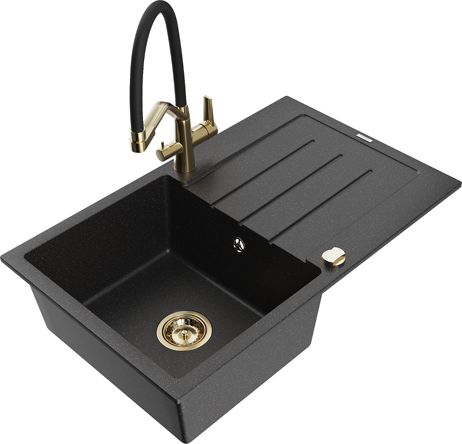 Mexen Bruno zlewozmywak granitowy 1-komorowy z ociekaczem i baterią kuchenną Duo, czarny/srebrny metalik - 6513-73-671701-57-G
