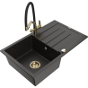 Mexen Bruno zlewozmywak granitowy 1-komorowy z ociekaczem i baterią kuchenną Duo, czarny nakrapiany - 6513-76-671701-57-G
