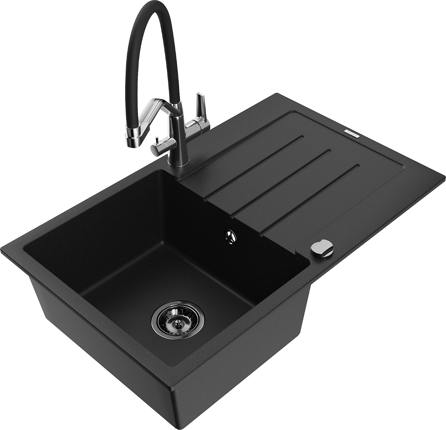 Mexen Bruno zlewozmywak granitowy 1-komorowy z ociekaczem i baterią kuchenną Duo, czarny - 6513-77-671701-07-B