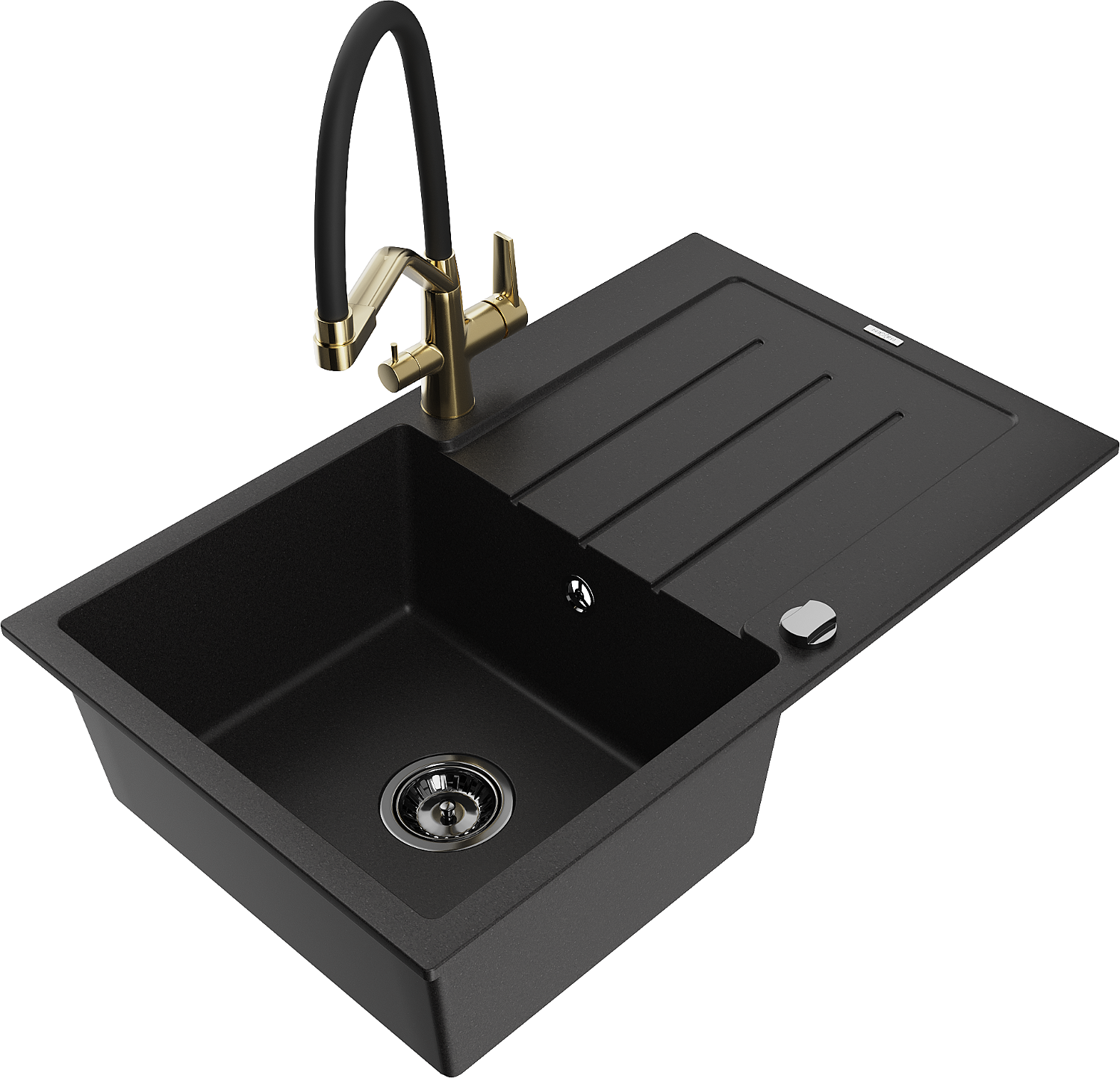 Mexen Bruno zlewozmywak granitowy 1-komorowy z ociekaczem i baterią kuchenną Duo, czarny - 6513-77-671701-57-B