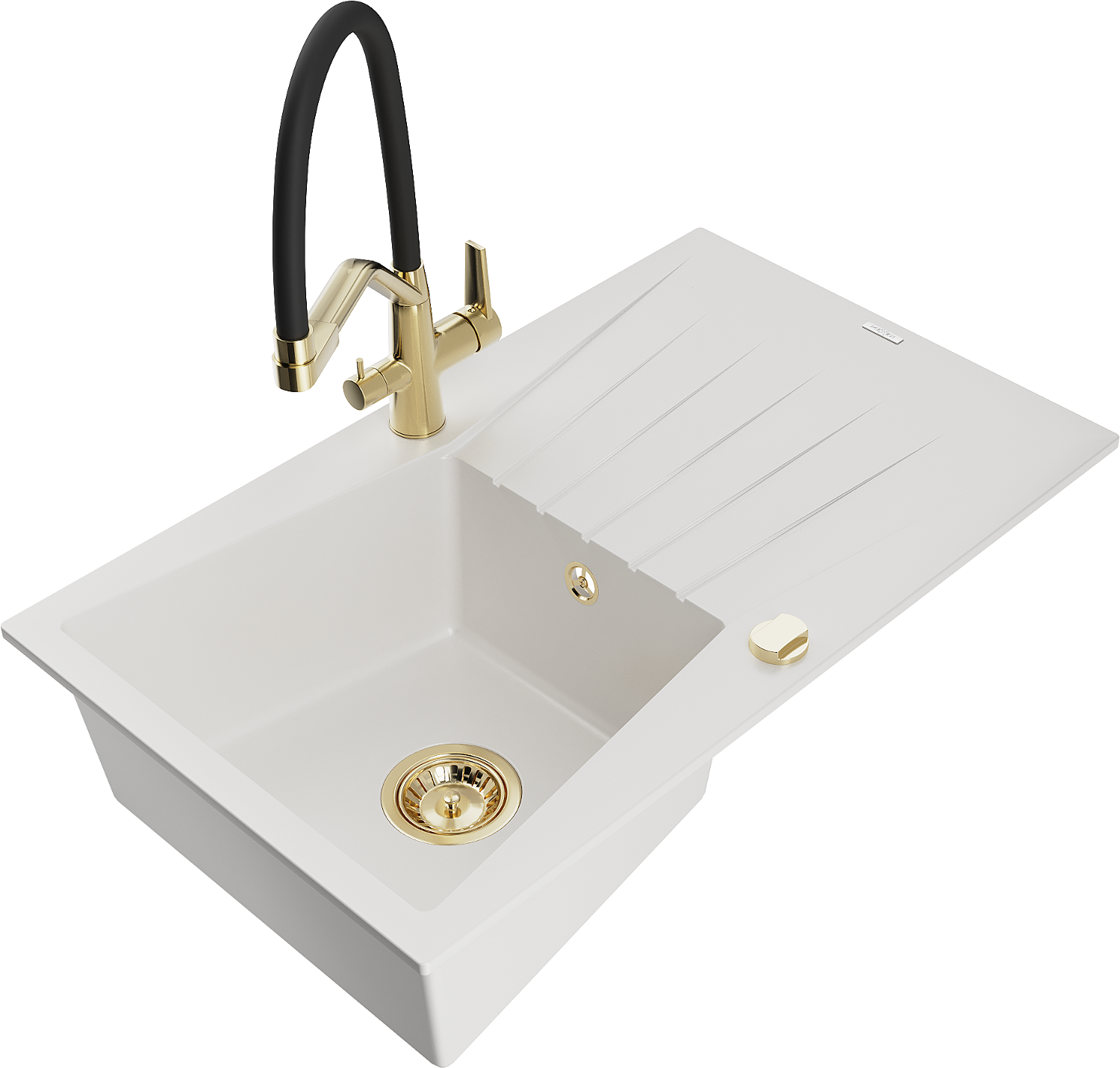 Mexen Cesar zlewozmywak granitowy 1-komorowy z ociekaczem i baterią kuchenną Duo, biały - 6514-20-671701-57-G