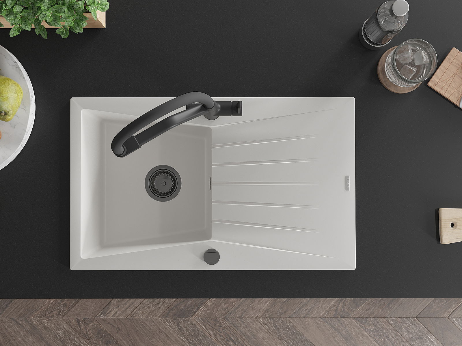 Dzięki zastosowaniu uniwersalnego systemu mocowania, zlew jest odwracalny, a ociekacz może zostać zamontowany na blacie po lewej lub prawej stronie. W ten sposób możesz z łatwością dopasować stronę do swoich potrzeb i warunków.