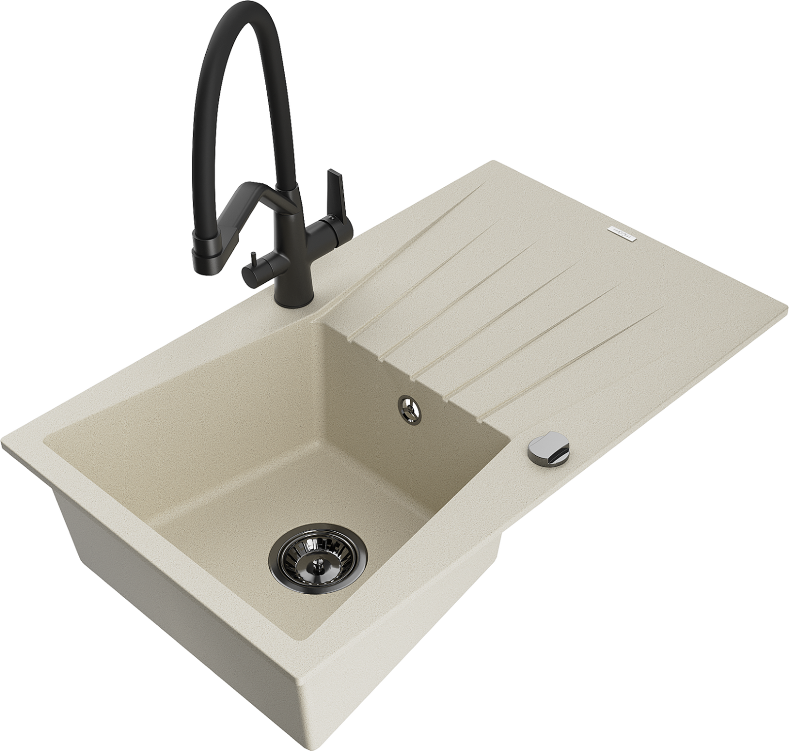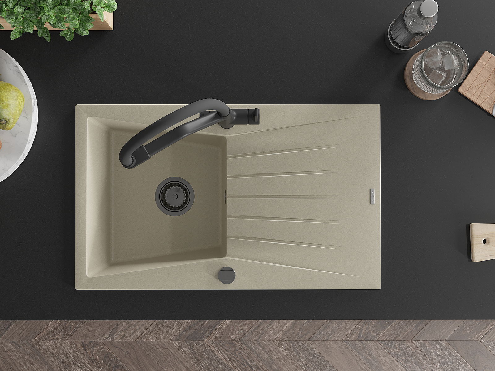 Mexen Cesar zlewozmywak granitowy 1-komorowy z ociekaczem i baterią kuchenną Duo, beżowy - 6514-69-671701-70-B