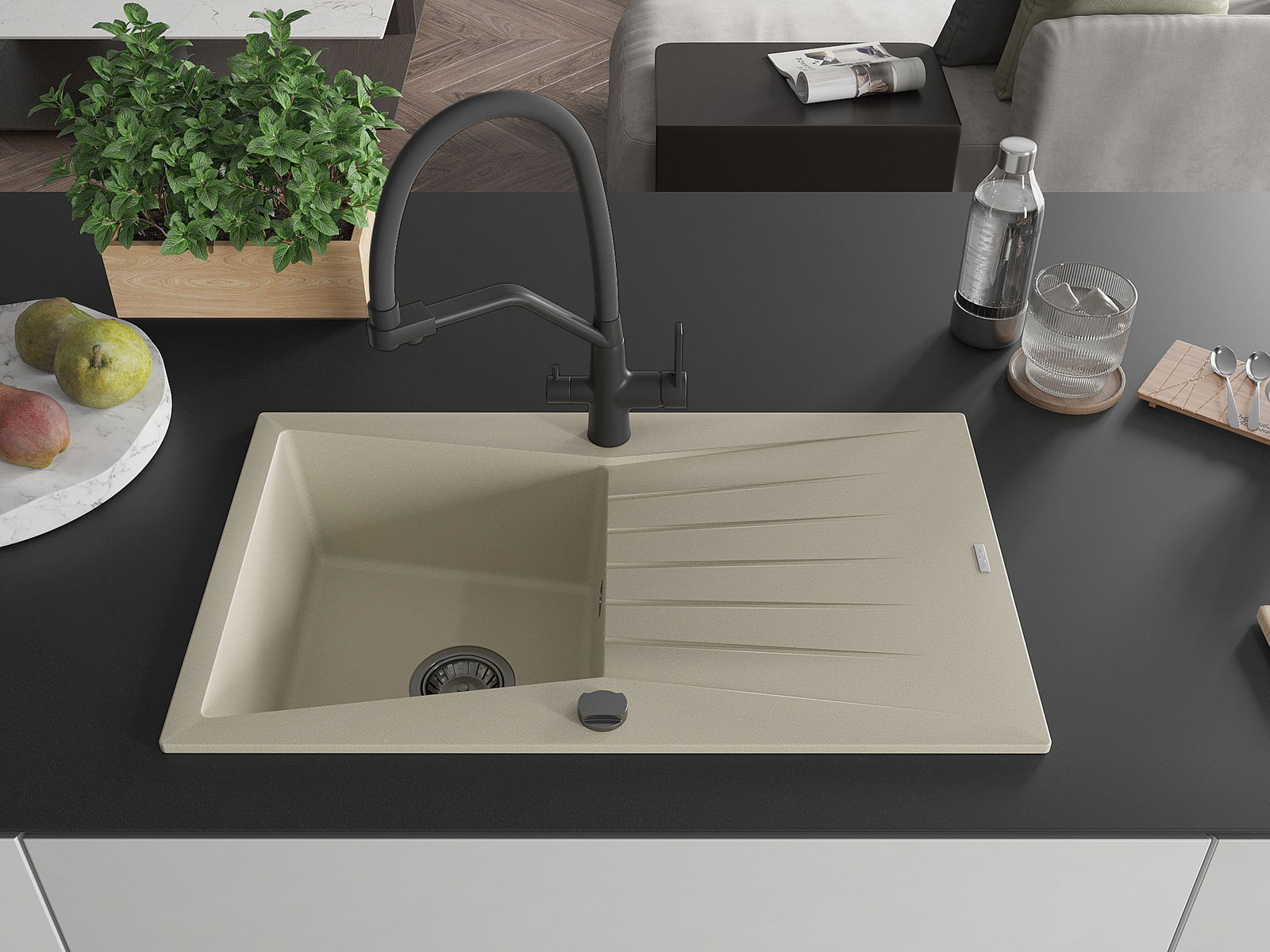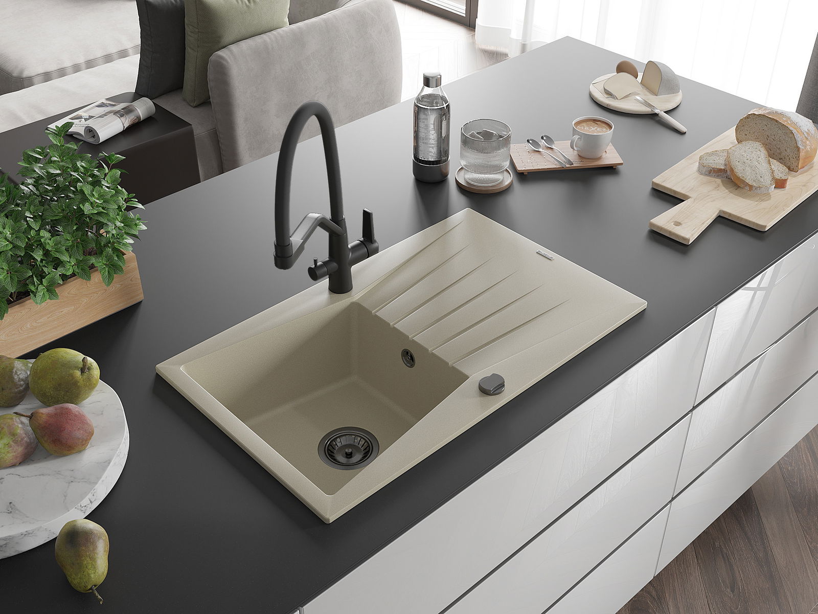 Zlewozmywak został wykonany z wysokiej jakości granitu. Stanowi eleganckie, a przede wszystkim praktyczne uzupełnienie każdej kuchni, niezależnie od jej stylu. Wysoka jakość oraz trwałość granitu zapewniają wieloletnie użytkowanie.