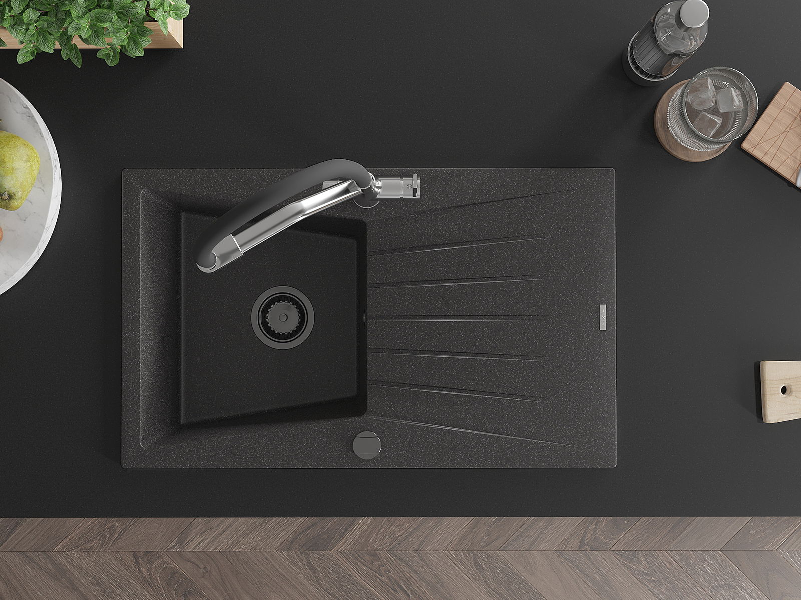 Zlewozmywak został wykonany z wysokiej jakości granitu. Stanowi eleganckie, a przede wszystkim praktyczne uzupełnienie każdej kuchni, niezależnie od jej stylu. Wysoka jakość oraz trwałość granitu zapewniają wieloletnie użytkowanie.