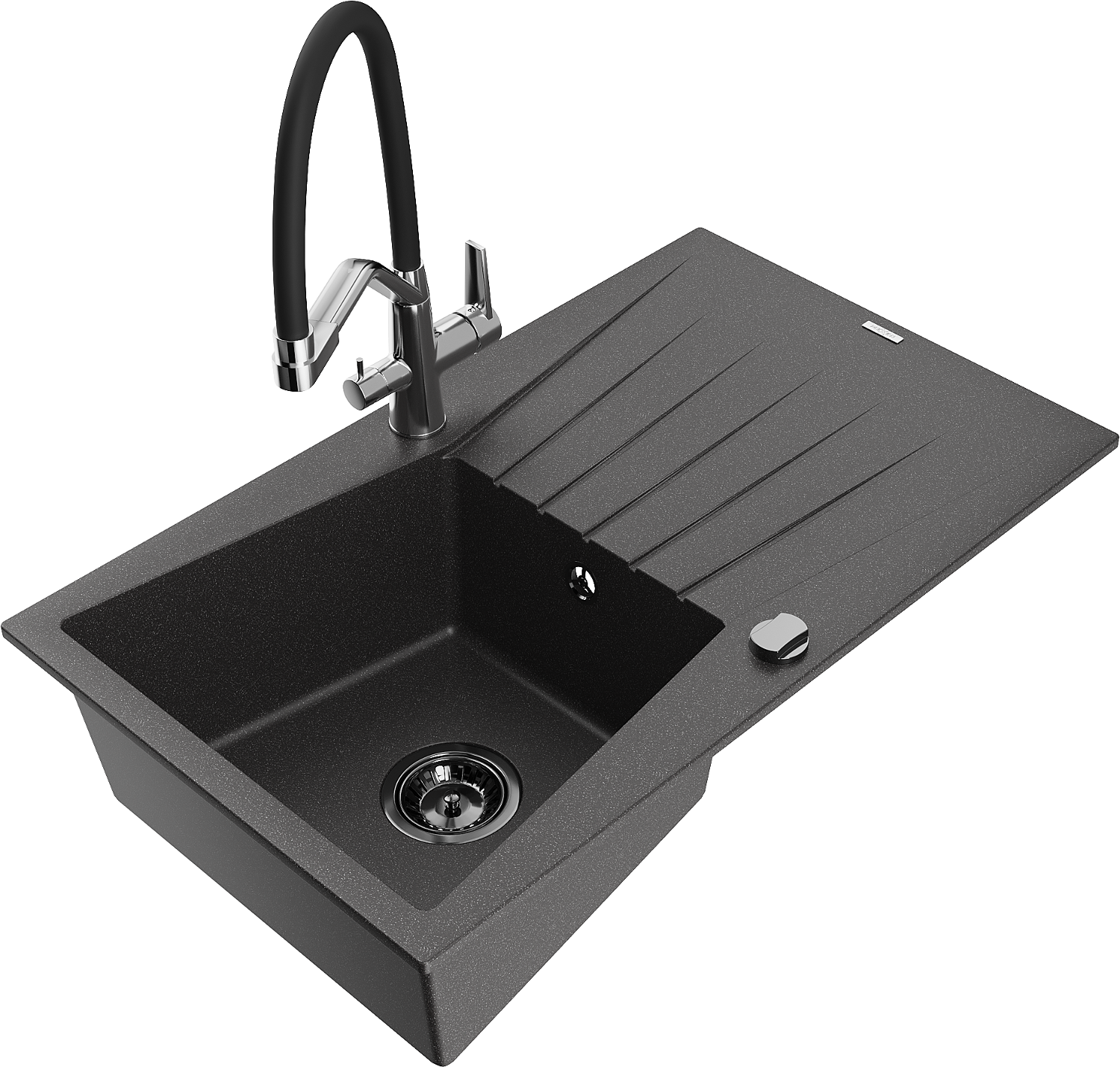 Mexen Cesar zlewozmywak granitowy 1-komorowy z ociekaczem i baterią kuchenną Duo, czarny nakrapiany - 6514-76-671701-07-B