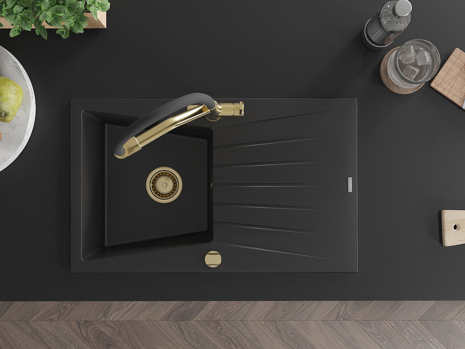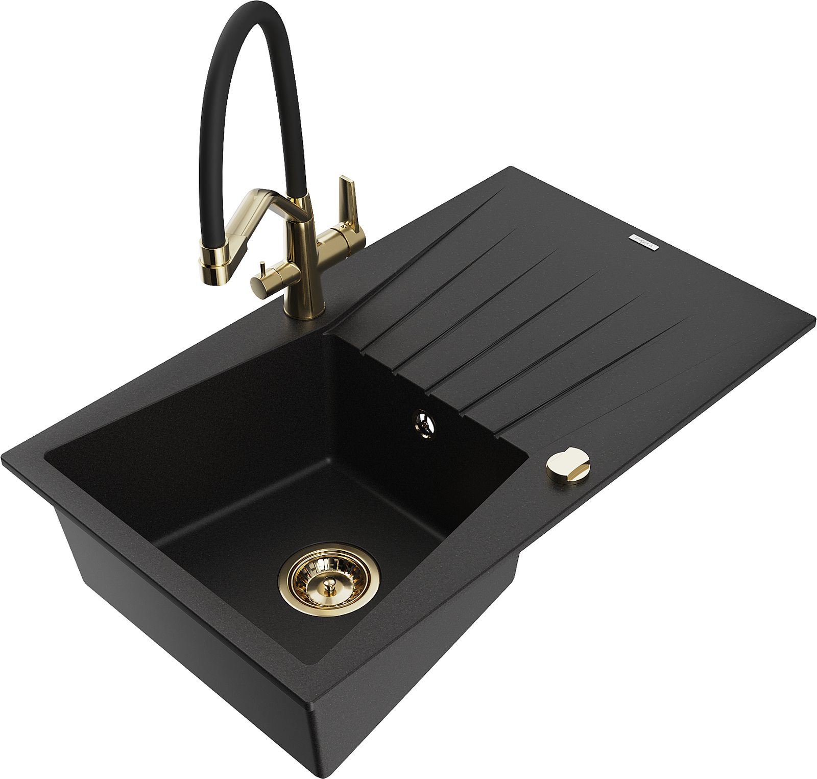Mexen Cesar zlewozmywak granitowy 1-komorowy z ociekaczem i baterią kuchenną Duo, czarny - 6514-77-671701-57-G