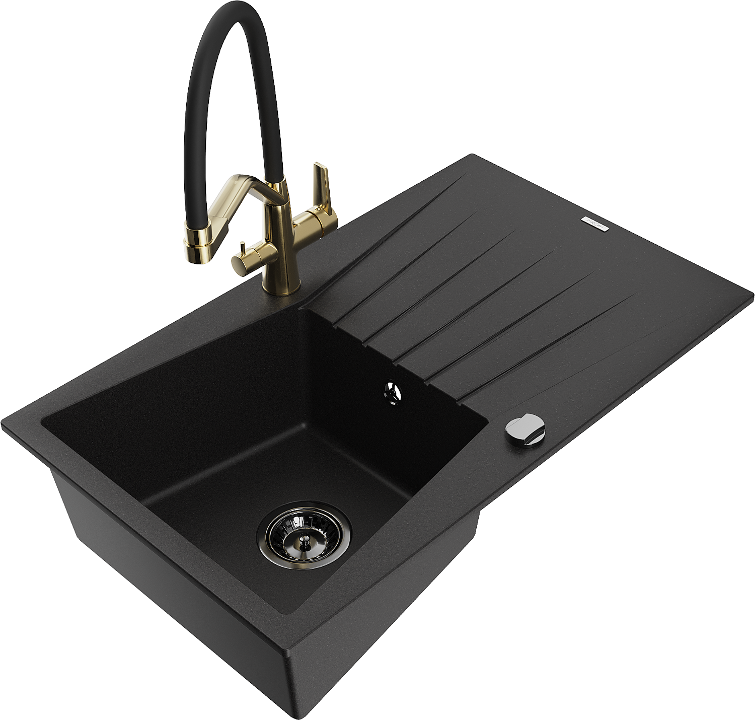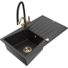 Mexen Cesar zlewozmywak granitowy 1-komorowy z ociekaczem i baterią kuchenną Duo, czarny - 6514-77-671701-57-B
