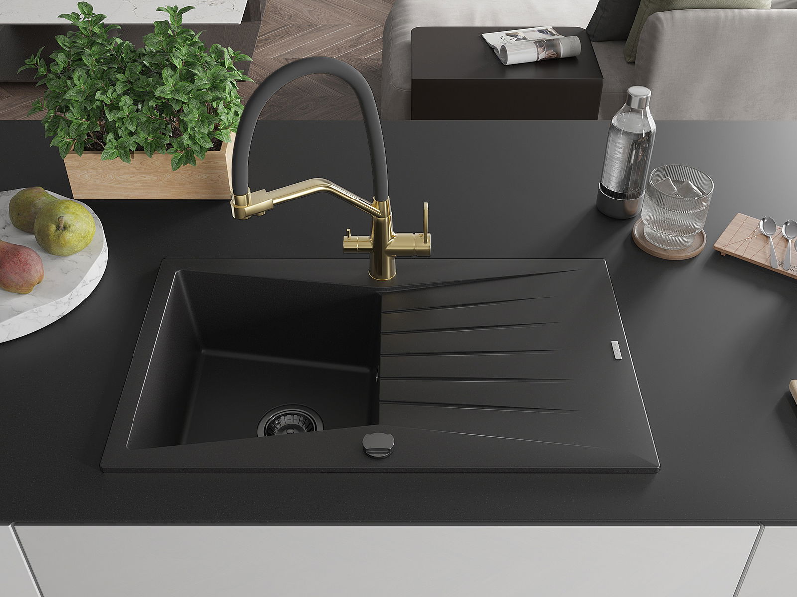 Zlewozmywak został wykonany z wysokiej jakości granitu. Stanowi eleganckie, a przede wszystkim praktyczne uzupełnienie każdej kuchni, niezależnie od jej stylu. Wysoka jakość oraz trwałość granitu zapewniają wieloletnie użytkowanie.