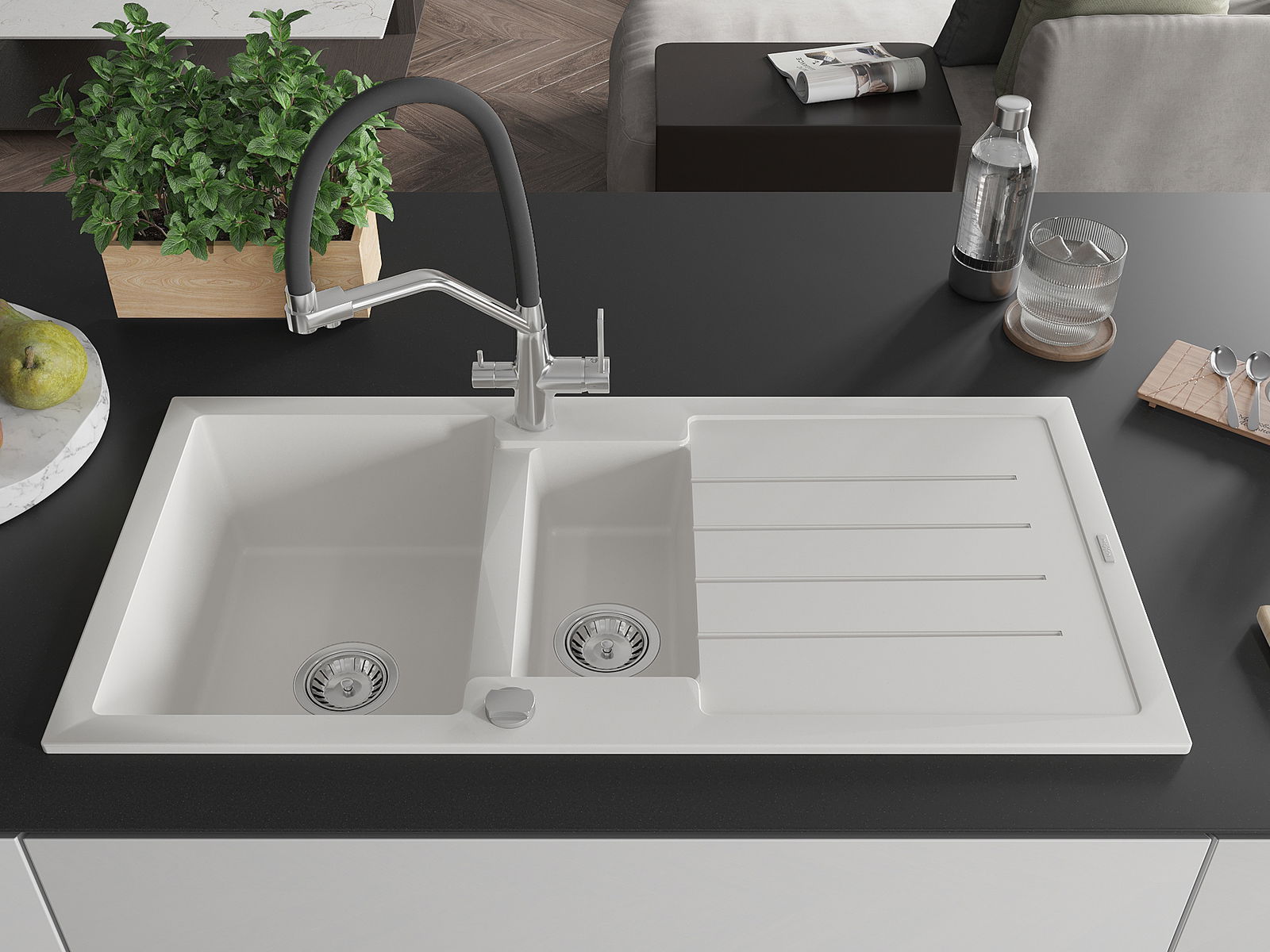 Dobrze zabezpieczona powierzchnia zlewozmywaka hamuje wnikanie zabrudzeń do jego wewnętrznych struktur. Dzięki temu utrzymanie zlewu w czystości jest jeszcze łatwiejsze, a jego powierzchnia zachowuje swoją estetykę na dłużej.
