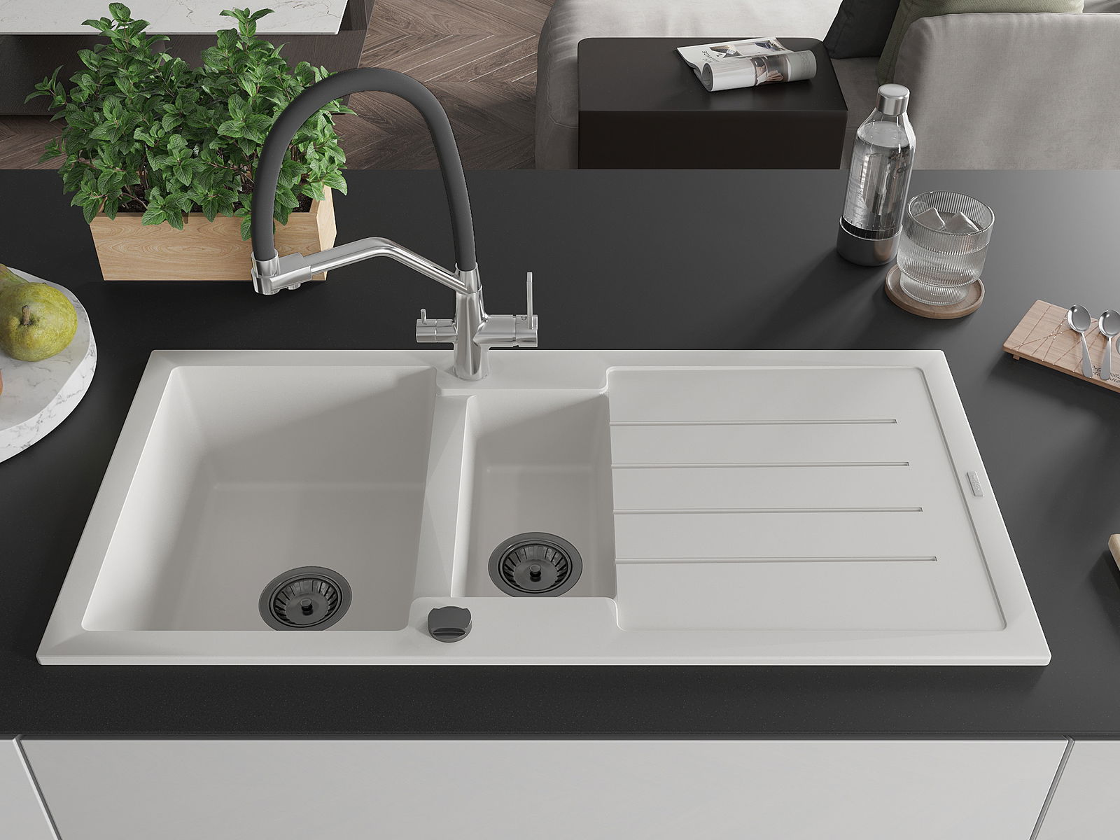 Dobrze zabezpieczona powierzchnia zlewozmywaka hamuje wnikanie zabrudzeń do jego wewnętrznych struktur. Dzięki temu utrzymanie zlewu w czystości jest jeszcze łatwiejsze, a jego powierzchnia zachowuje swoją estetykę na dłużej.