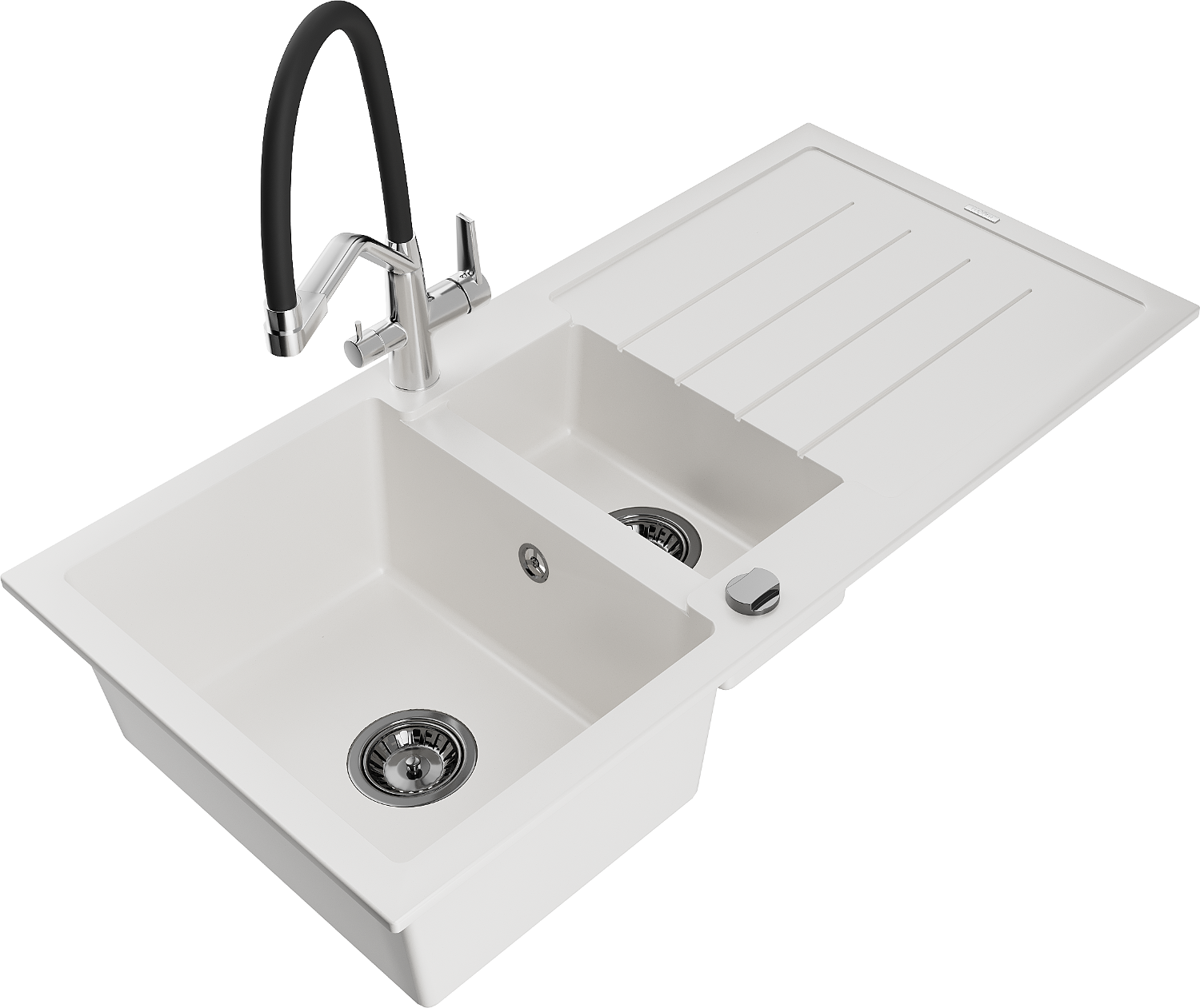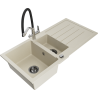 Mexen Andres zlewozmywak granitowy 1,5-komorowy z ociekaczem i baterią kuchenną Duo, biały - 6515-20-671701-07-B