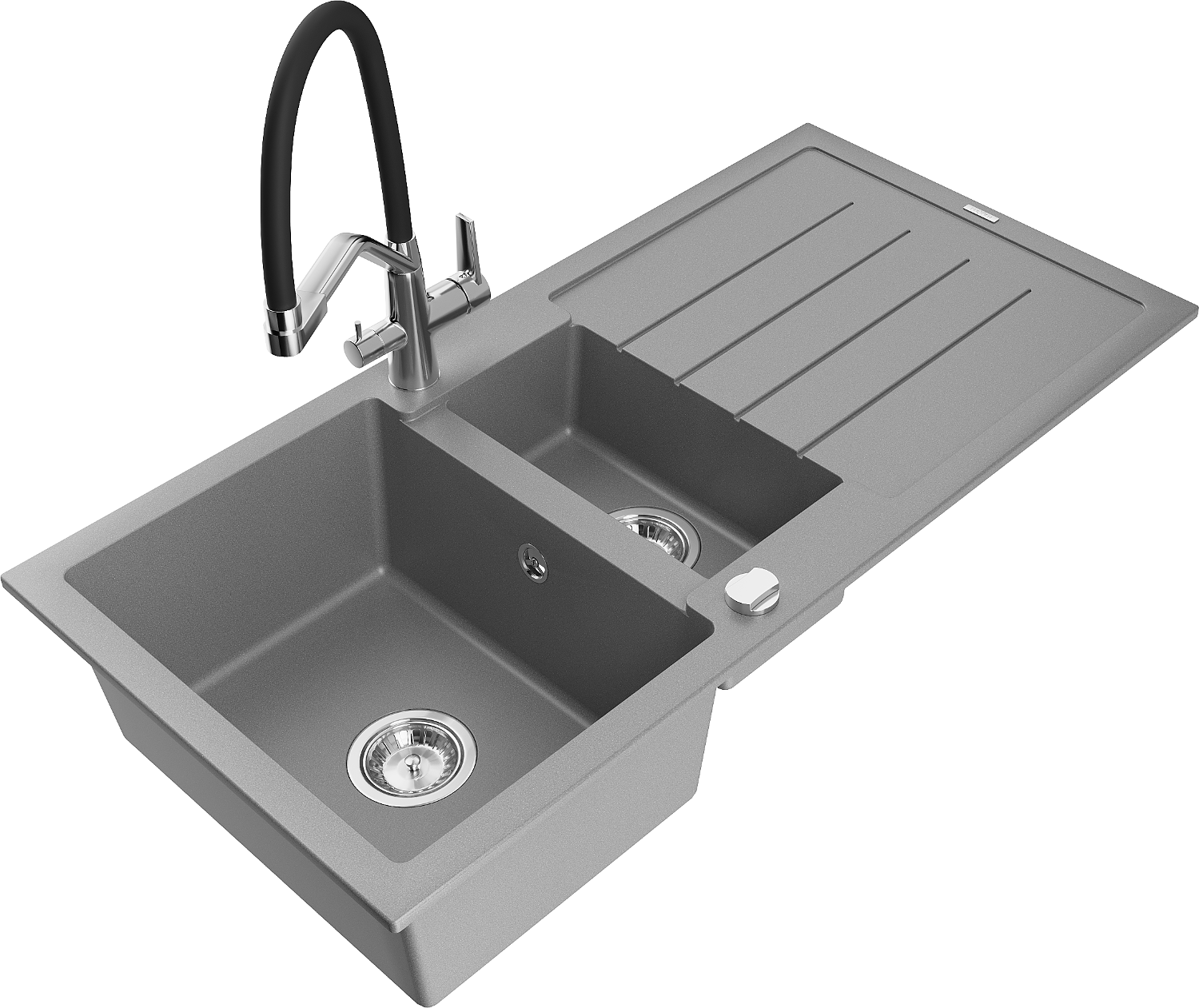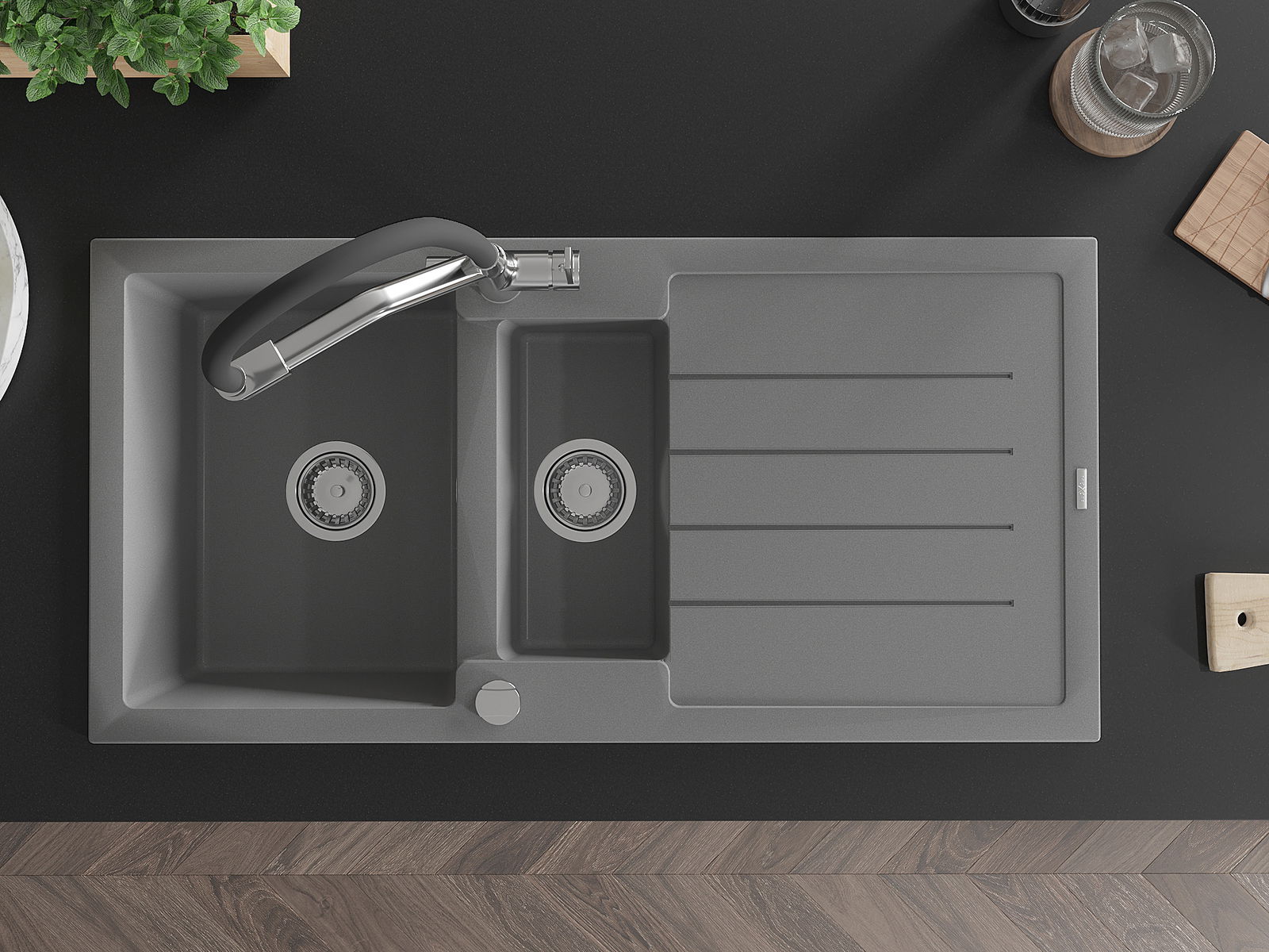Mexen Andres zlewozmywak granitowy 1,5-komorowy z ociekaczem i baterią kuchenną Duo, szary - 6515-71-671701-07