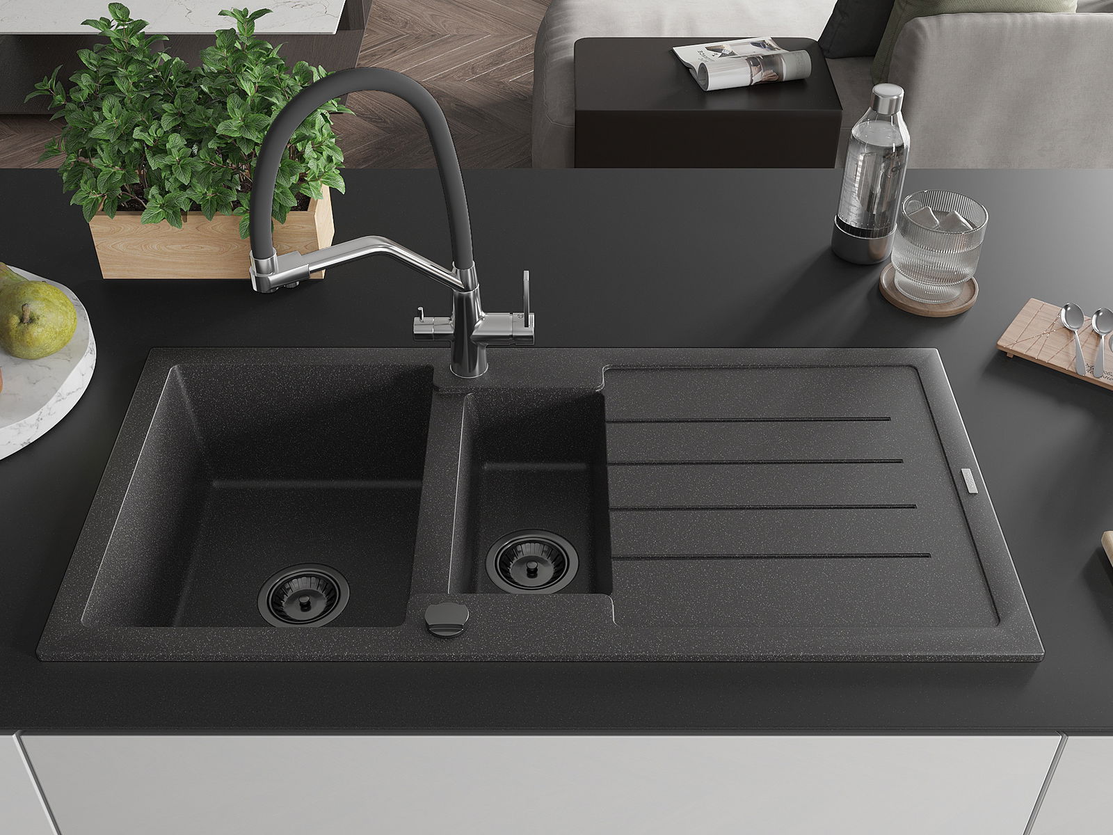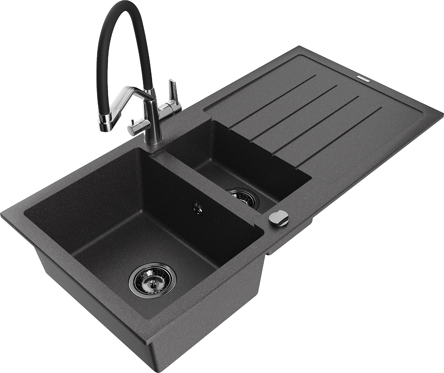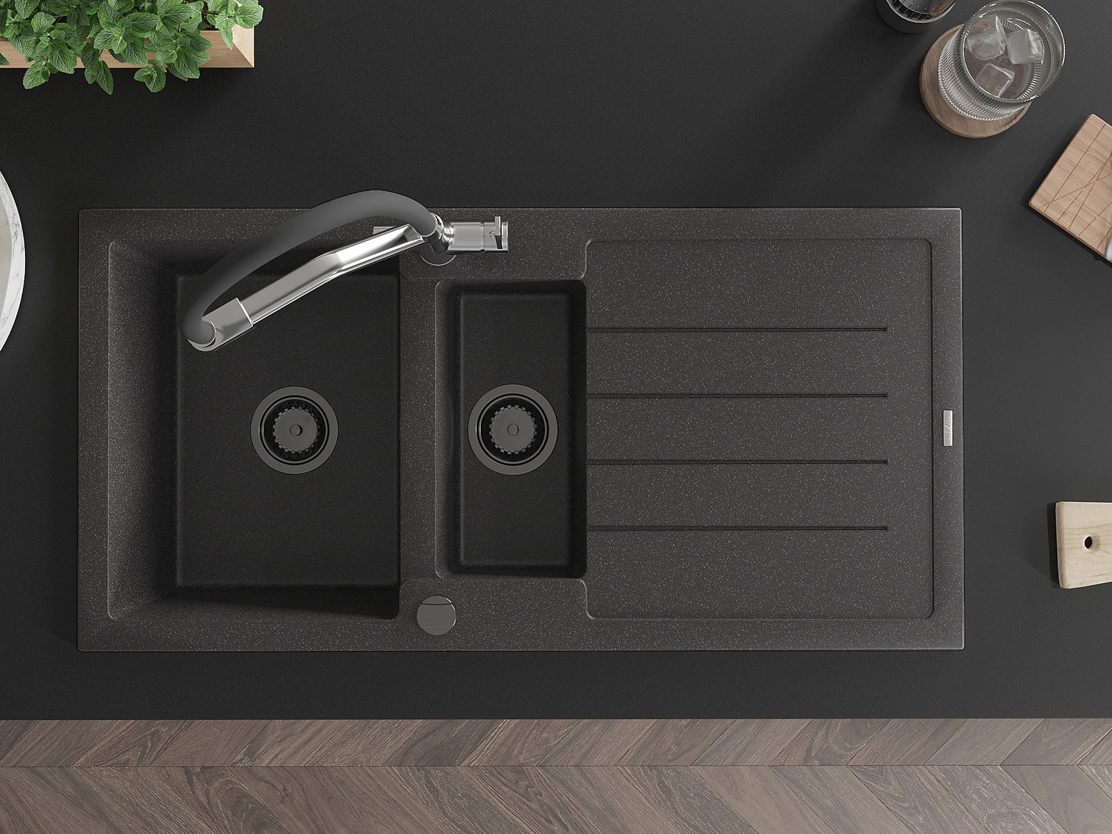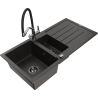 Mexen Andres zlewozmywak granitowy 1,5-komorowy z ociekaczem i baterią kuchenną Duo, czarny nakrapiany - 6515-76-671701-07-B