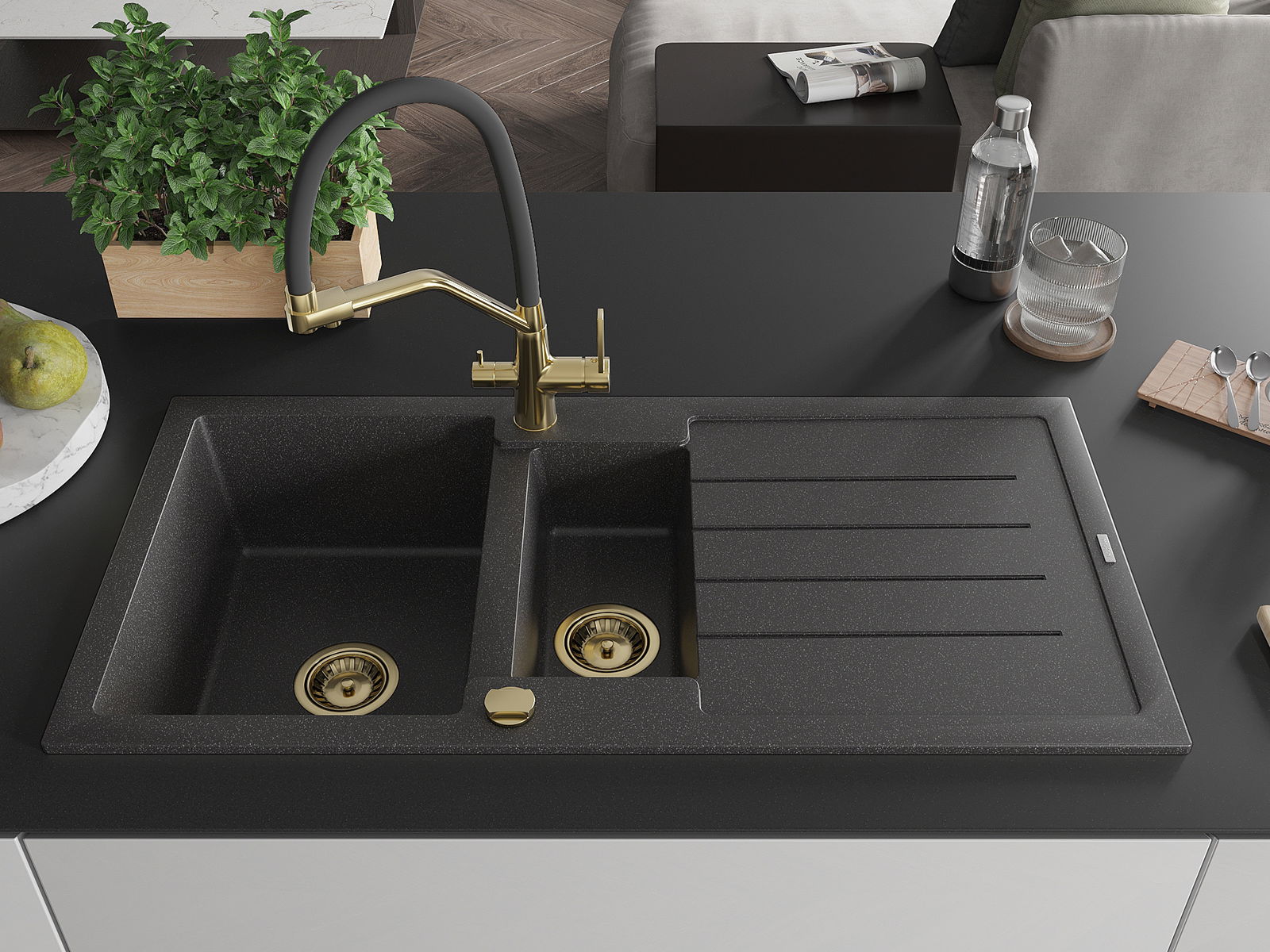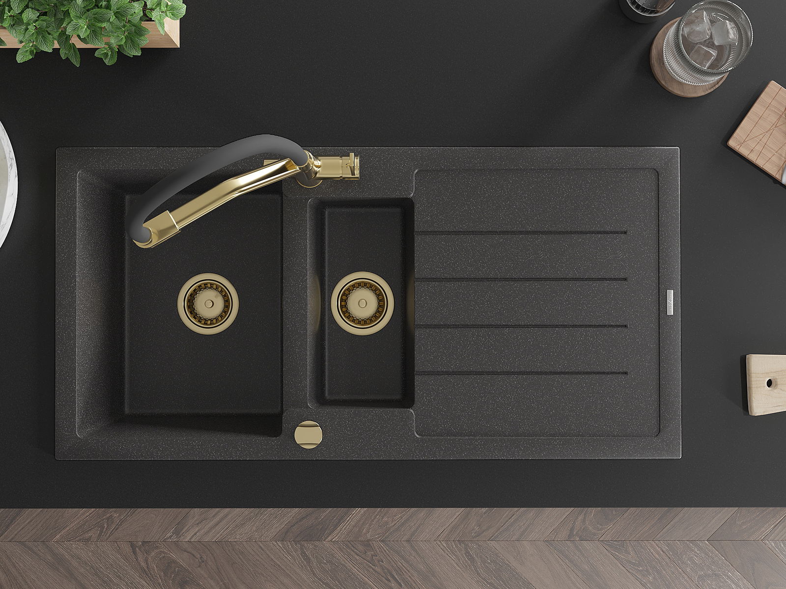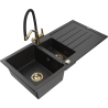 Mexen Andres zlewozmywak granitowy 1,5-komorowy z ociekaczem i baterią kuchenną Duo, czarny nakrapiany - 6515-76-671701-57-G