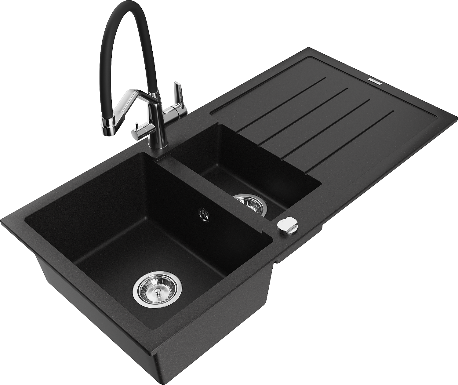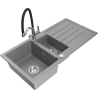 Mexen Andres zlewozmywak granitowy 1,5-komorowy z ociekaczem i baterią kuchenną Duo, czarny - 6515-77-671701-07