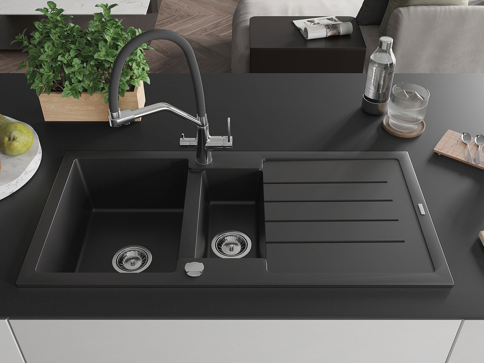 Dobrze zabezpieczona powierzchnia zlewozmywaka hamuje wnikanie zabrudzeń do jego wewnętrznych struktur. Dzięki temu utrzymanie zlewu w czystości jest jeszcze łatwiejsze, a jego powierzchnia zachowuje swoją estetykę na dłużej.