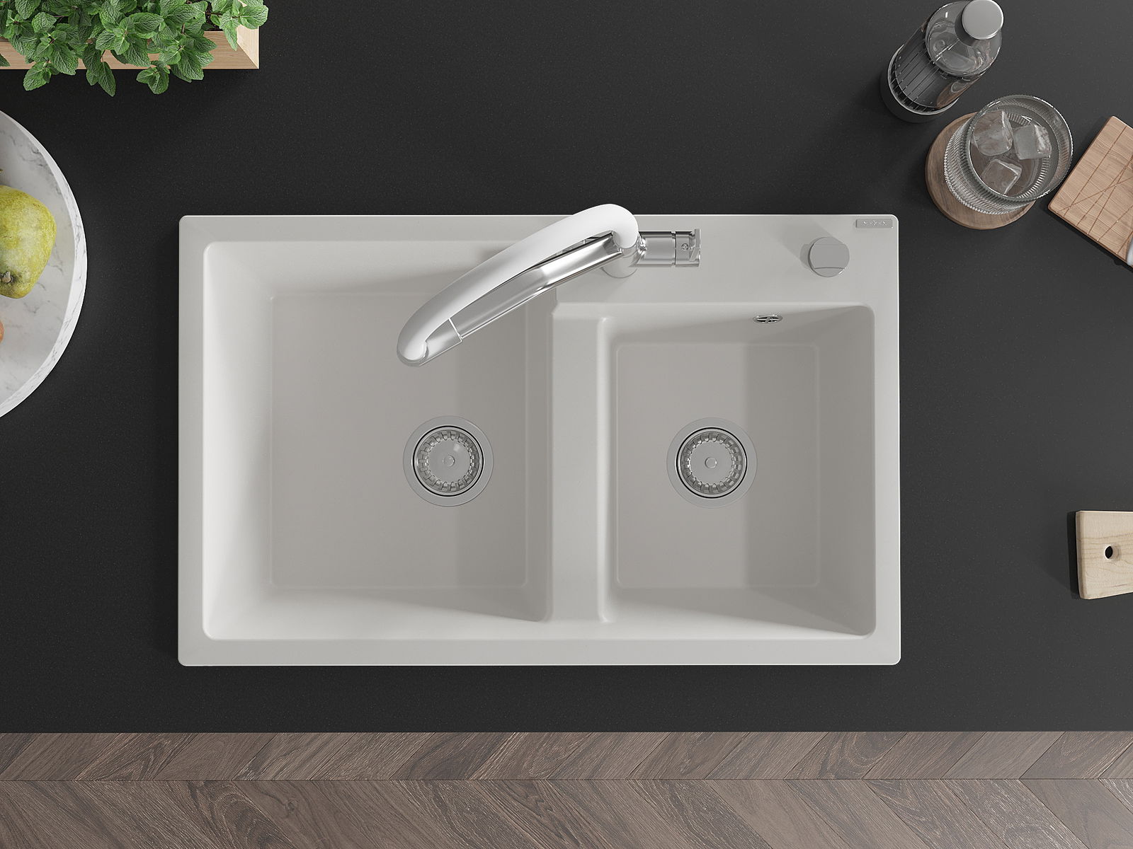 Mexen Tomas zlewozmywak granitowy 2-komorowy z baterią kuchenną Duo, biały - 6516-20-671701-02