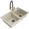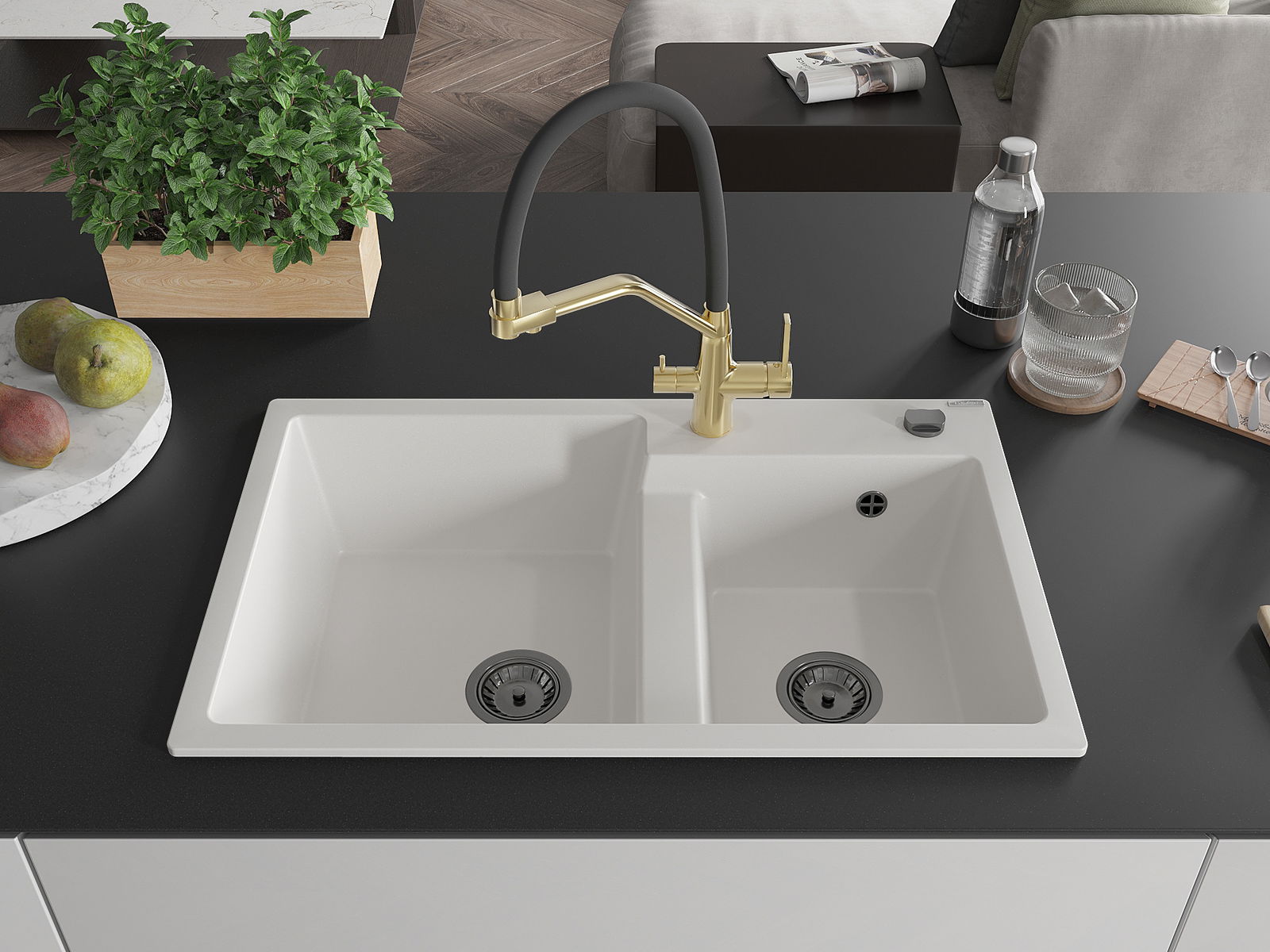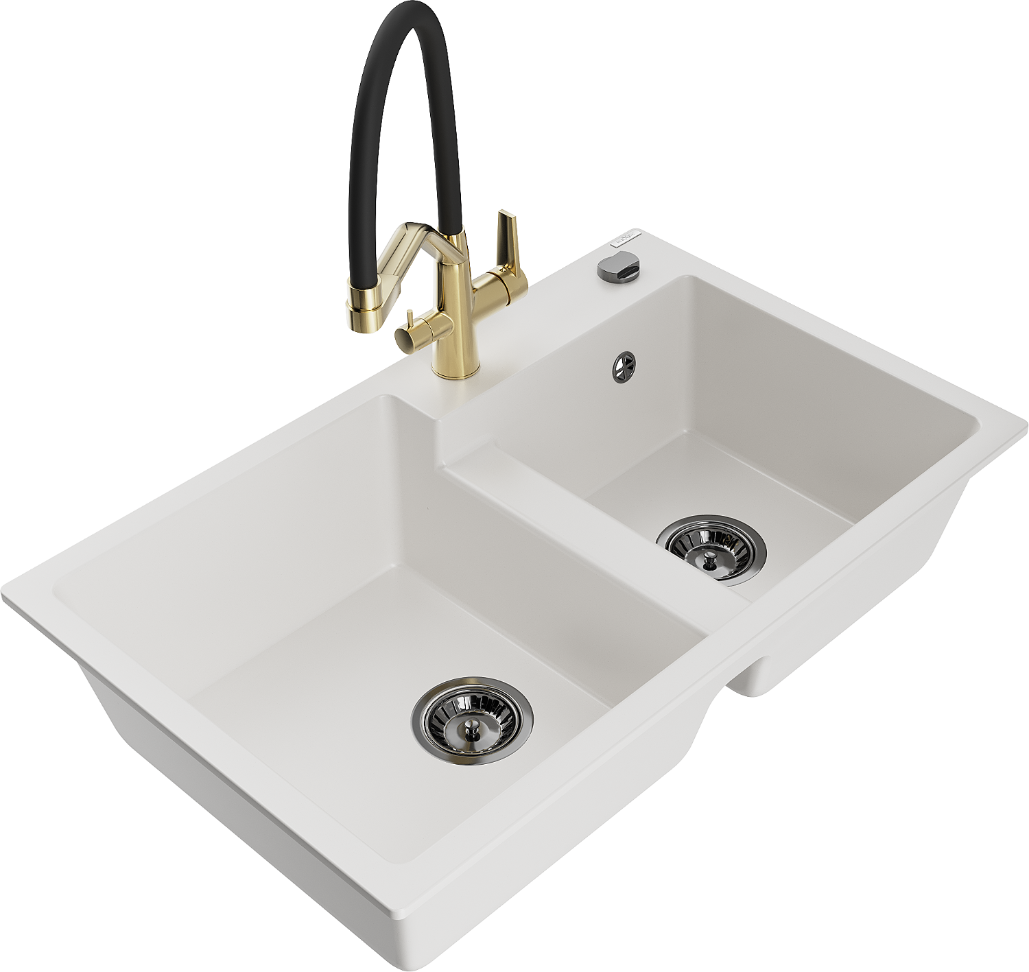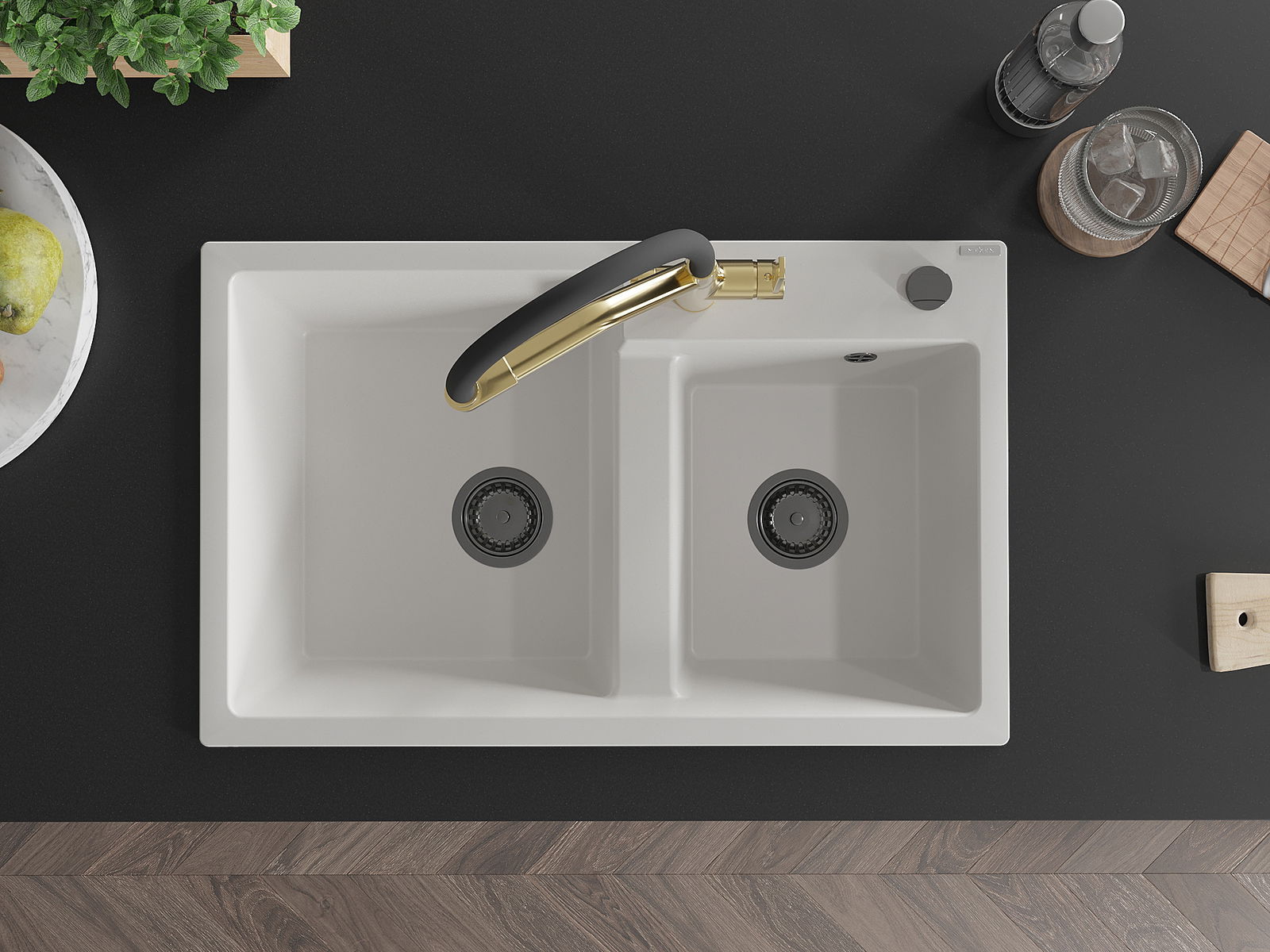 Mexen Tomas zlewozmywak granitowy 2-komorowy z baterią kuchenną Duo, biały - 6516-20-671701-57-B