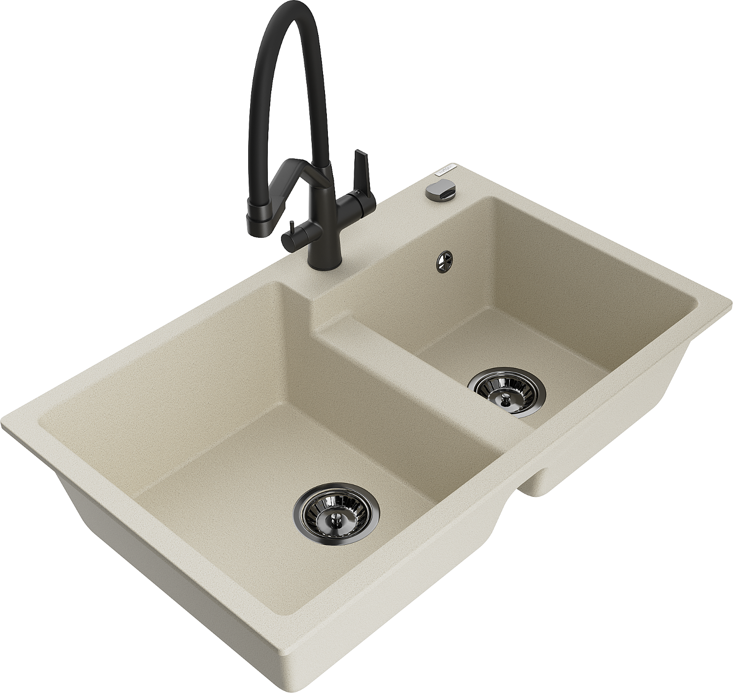 Mexen Tomas zlewozmywak granitowy 2-komorowy z baterią kuchenną Duo, beżowy - 6516-69-671701-70-B