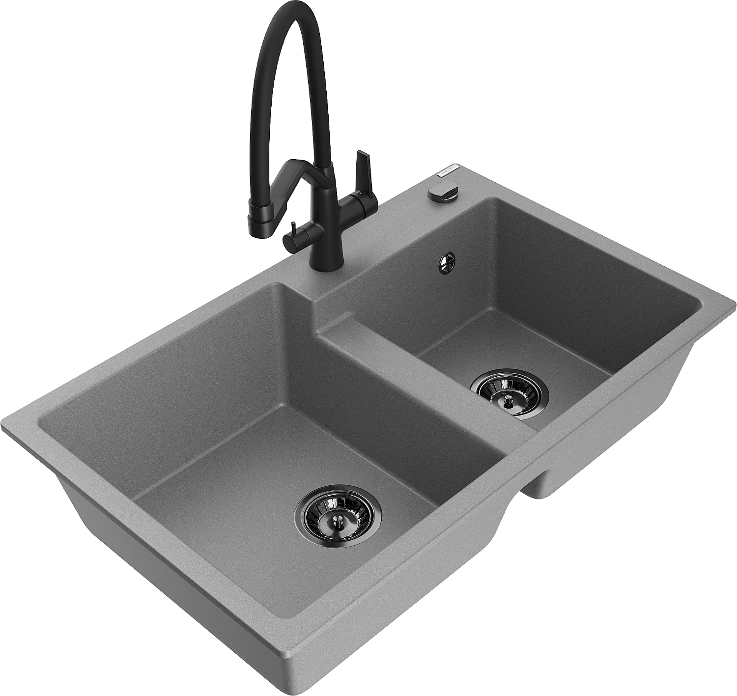 Mexen Tomas zlewozmywak granitowy 2-komorowy z baterią kuchenną Duo, szary - 6516-71-671701-70-B