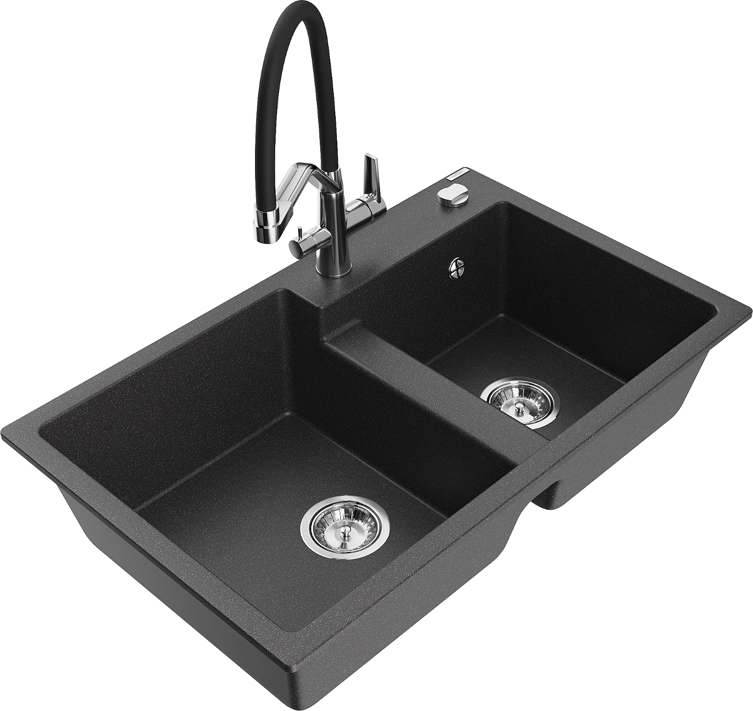 Mexen Tomas zlewozmywak granitowy 2-komorowy z baterią kuchenną Duo, czarny nakrapiany - 6516-76-671701-07
