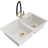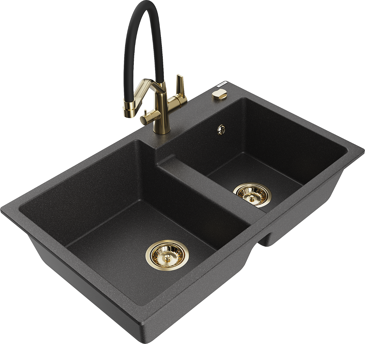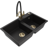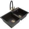 Mexen Tomas zlewozmywak granitowy 2-komorowy z baterią kuchenną Duo, czarny nakrapiany - 6516-76-671701-57-G