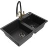 Mexen Tomas zlewozmywak granitowy 2-komorowy z baterią kuchenną Duo, czarny nakrapiany - 6516-76-671701-57-B