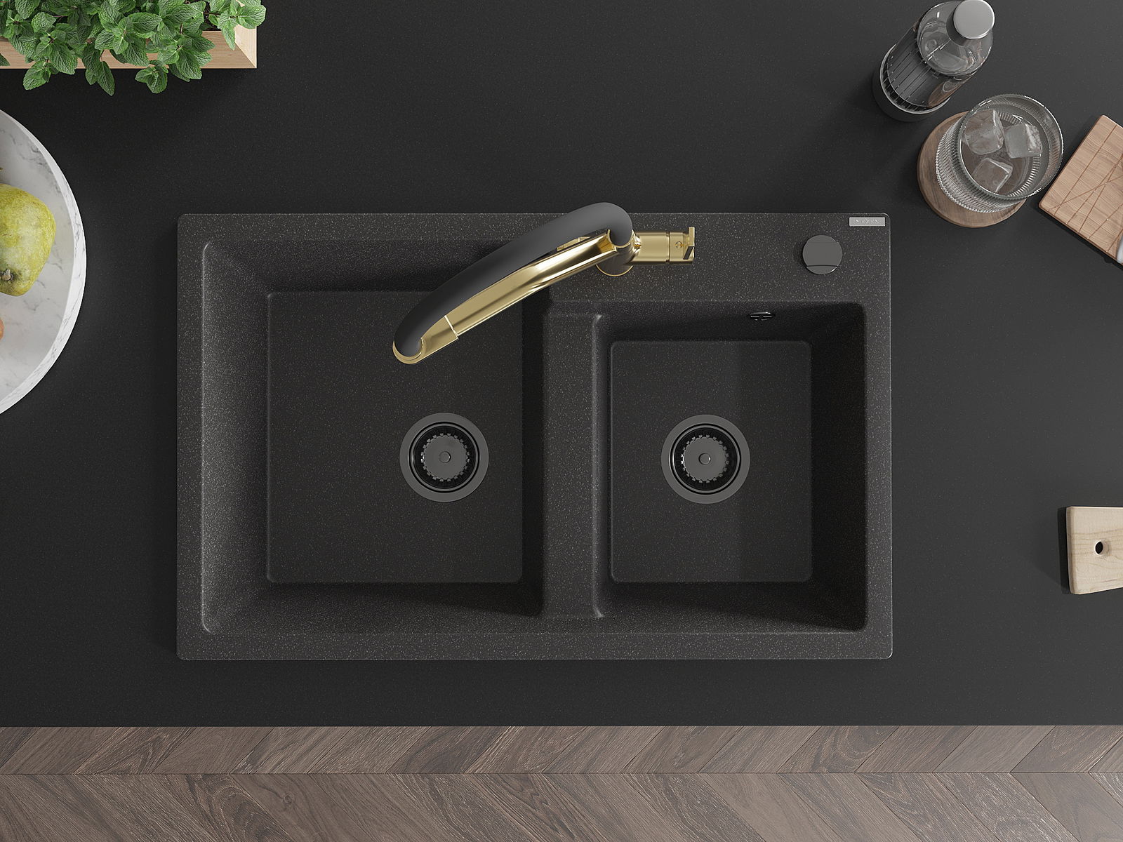 Zlew posiada podfrezowany otwór o średnicy 35 mm do samodzielnego wybicia. Można go wykorzystać m.in. do montażu dozownika na płyn, który wyeliminuje obecność plastikowych butelek w kuchni i nada jej eleganckiego wykończenia.