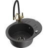 Mexen Kevin zlewozmywak granitowy 1-komorowy z baterią kuchenną Duo, czarny/złoty metalik - 6517-75-671701-57-B