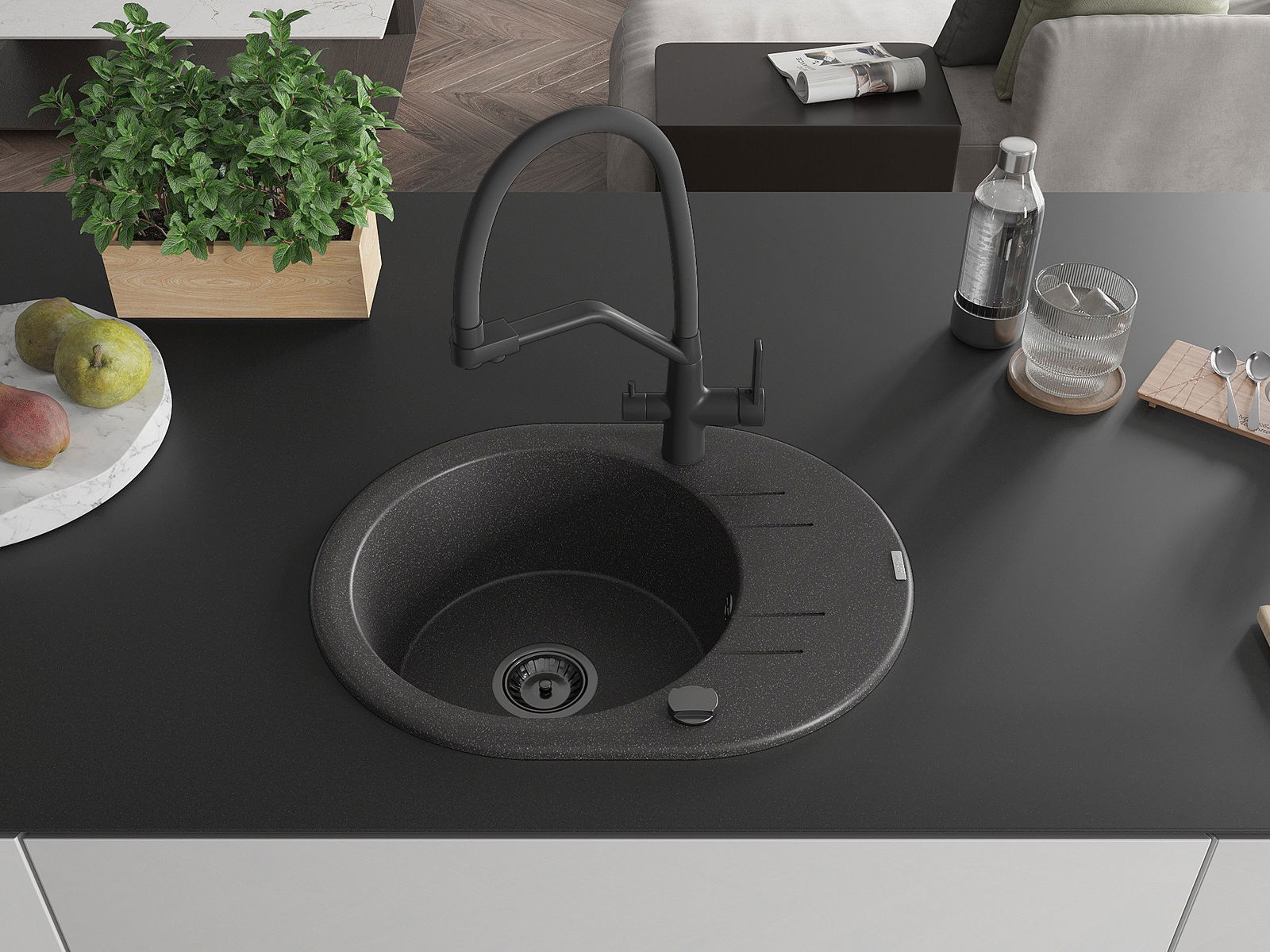 Zlewozmywak został wykonany z wysokiej jakości granitu. Stanowi eleganckie, a przede wszystkim praktyczne uzupełnienie każdej kuchni, niezależnie od jej stylu. Wysoka jakość oraz trwałość granitu zapewniają wieloletnie użytkowanie.
