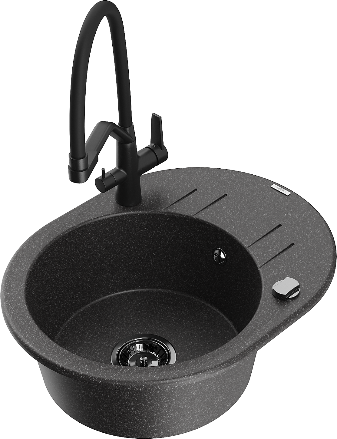 Mexen Kevin zlewozmywak granitowy 1-komorowy z baterią kuchenną Duo, czarny nakrapiany - 6517-76-671701-70-B