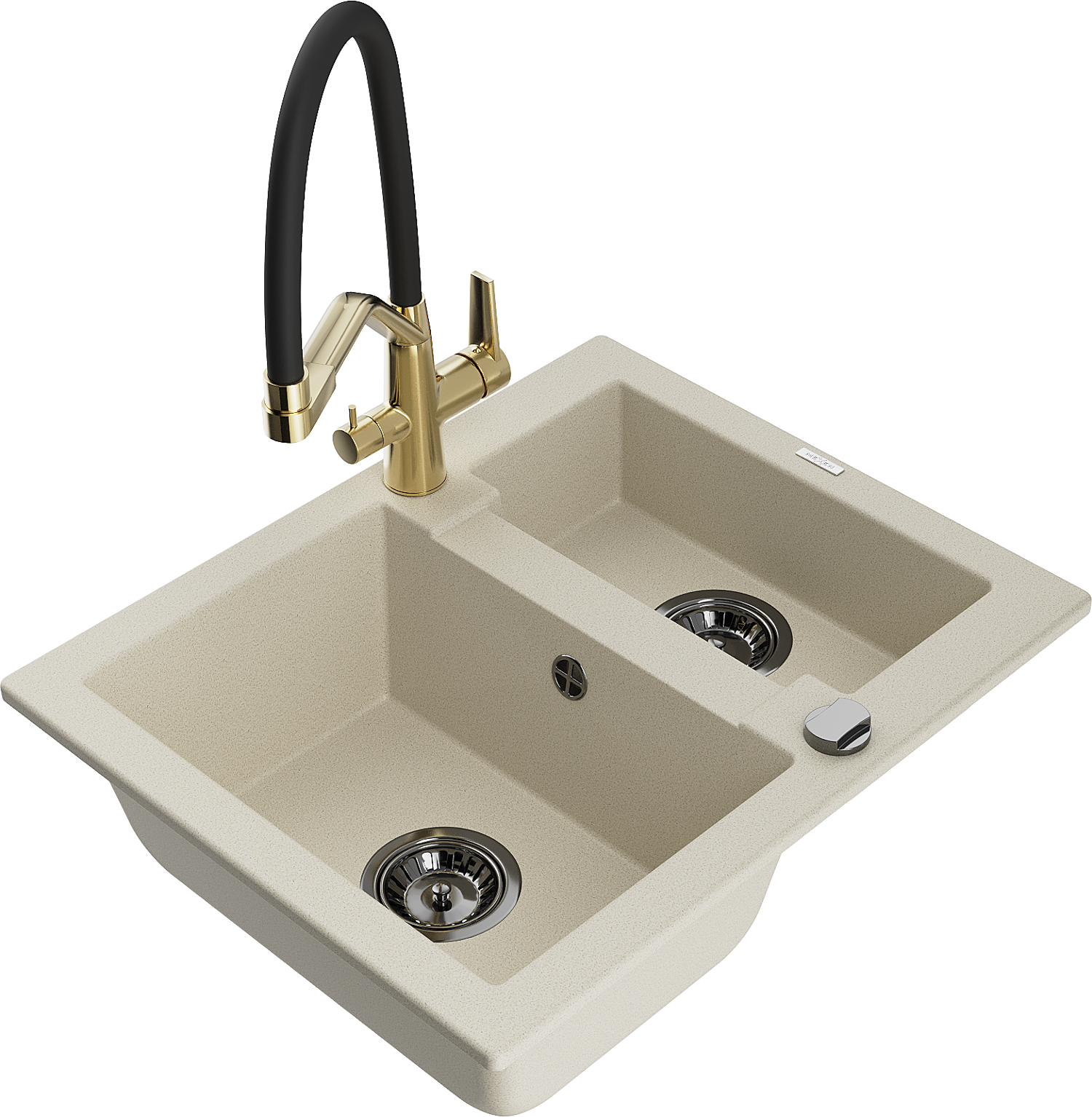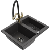 Mexen Carlos zlewozmywak granitowy 1,5-komorowy z baterią kuchenną Duo, beżowy - 6518-69-671701-57-B