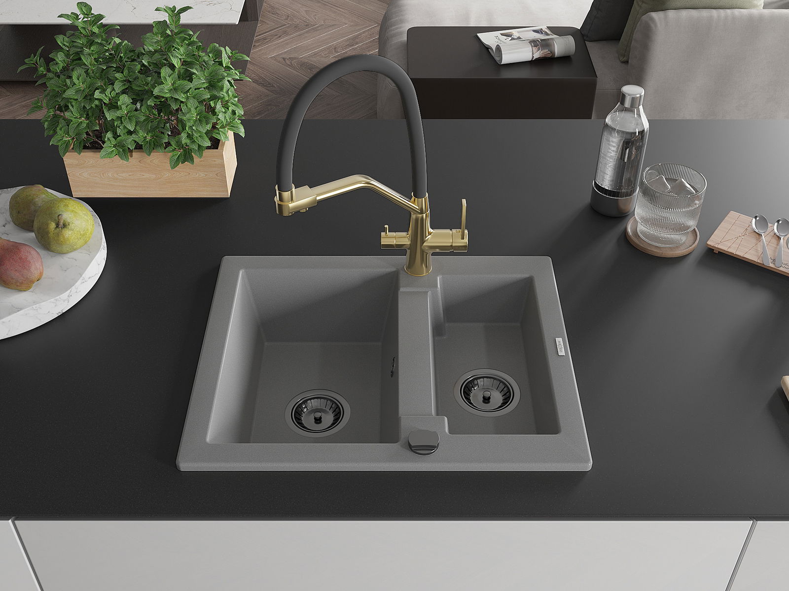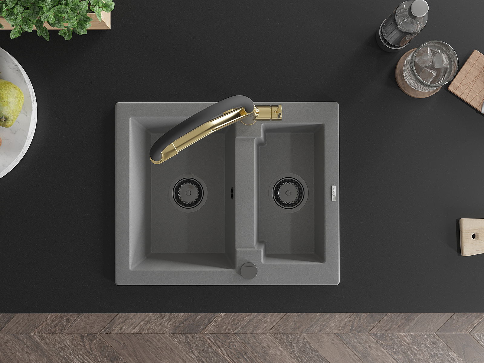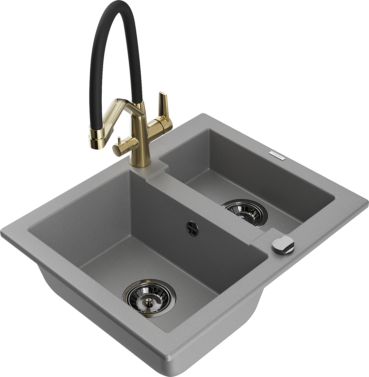 Mexen Carlos zlewozmywak granitowy 1,5-komorowy z baterią kuchenną Duo, szary - 6518-71-671701-57-B