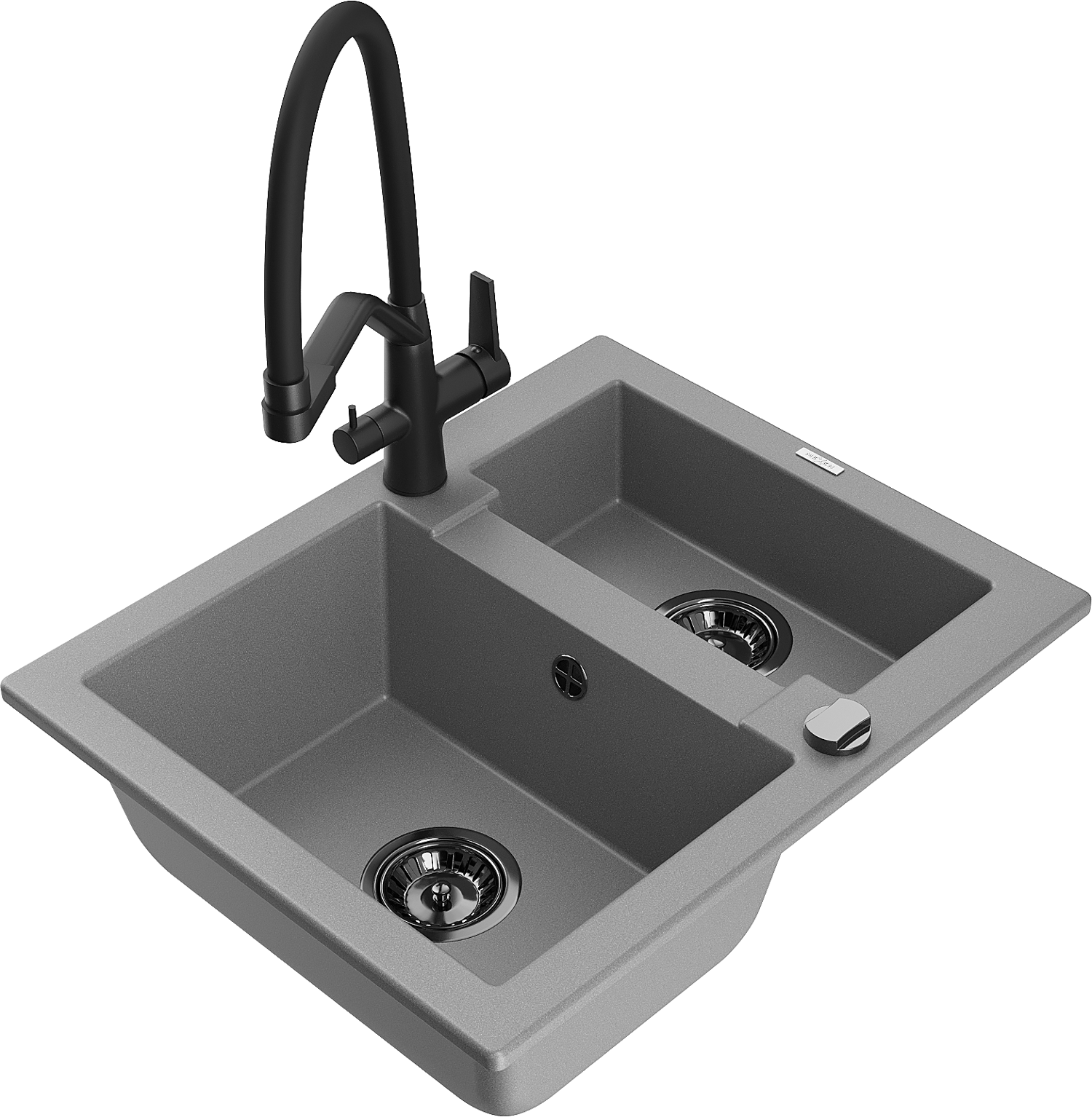 Mexen Carlos zlewozmywak granitowy 1,5-komorowy z baterią kuchenną Duo, szary - 6518-71-671701-70-B