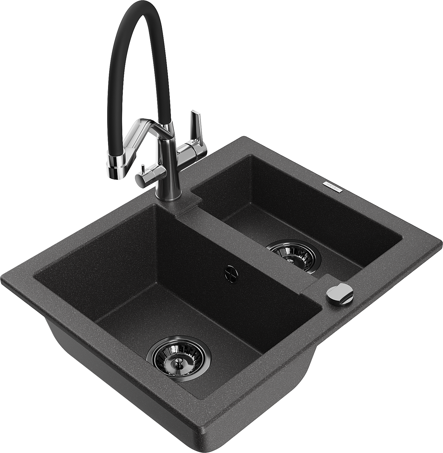 Mexen Carlos zlewozmywak granitowy 1,5-komorowy z baterią kuchenną Duo, czarny nakrapiany - 6518-76-671701-07-B