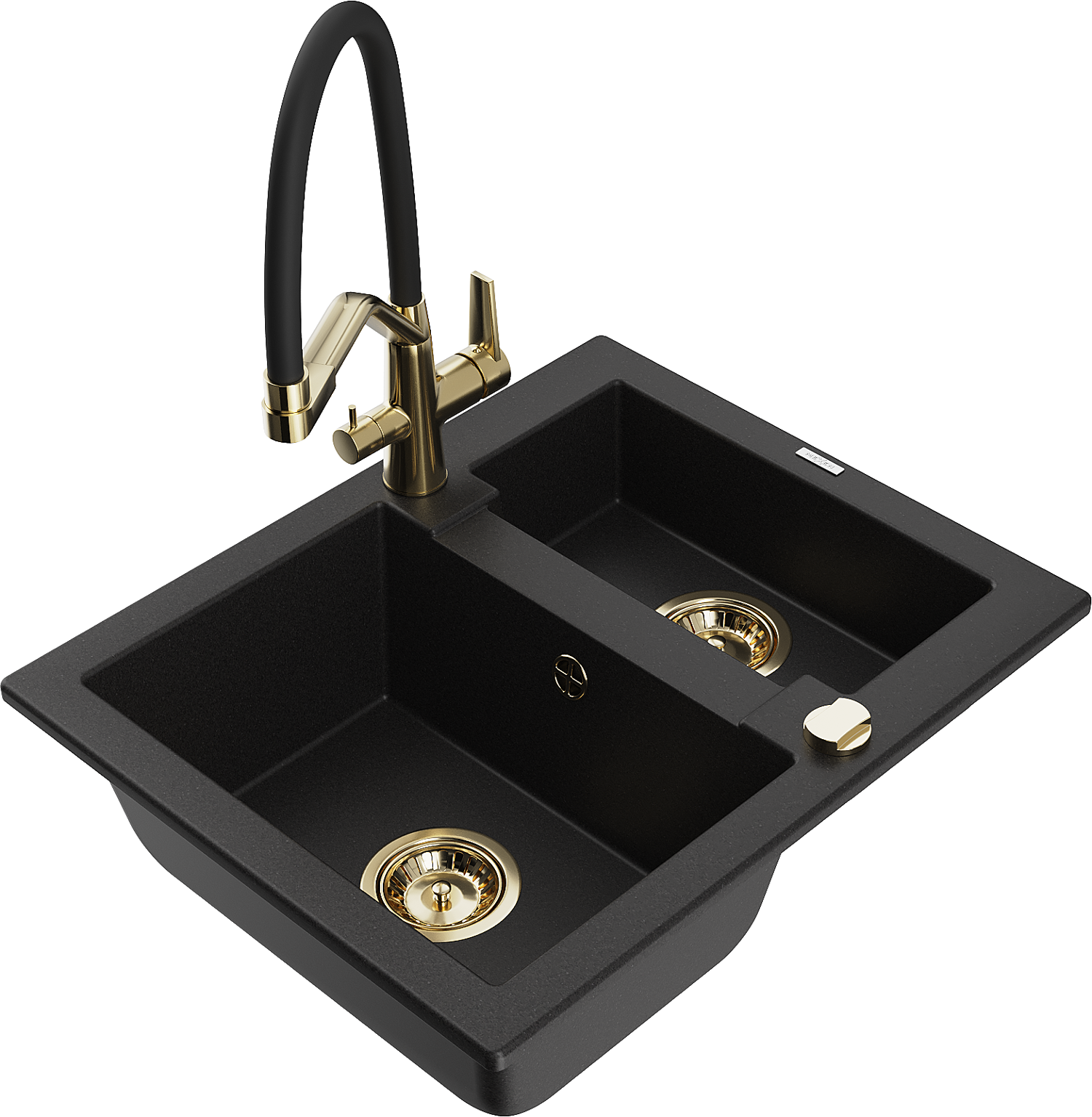Mexen Carlos zlewozmywak granitowy 1,5-komorowy z baterią kuchenną Duo, czarny - 6518-77-671701-57-G