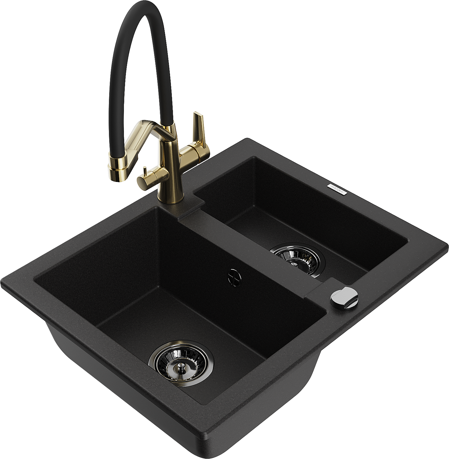 Mexen Carlos zlewozmywak granitowy 1,5-komorowy z baterią kuchenną Duo, czarny - 6518-77-671701-57-B
