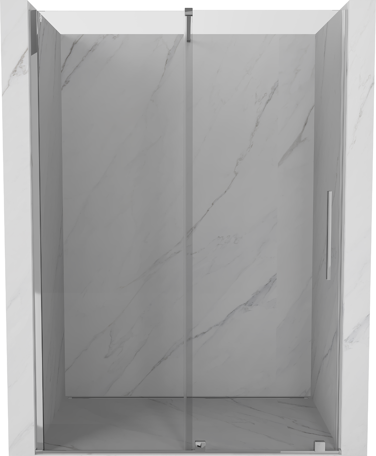 Dzięki zastosowaniu uniwersalnego systemu mocowania, drzwi prysznicowe mogą zostać zamontowane z prawej lub z lewej strony, zależnie od potrzeb. Dzięki temu możesz z łatwością zaprojektować prysznic dopasowany do przestrzeni łazienki.