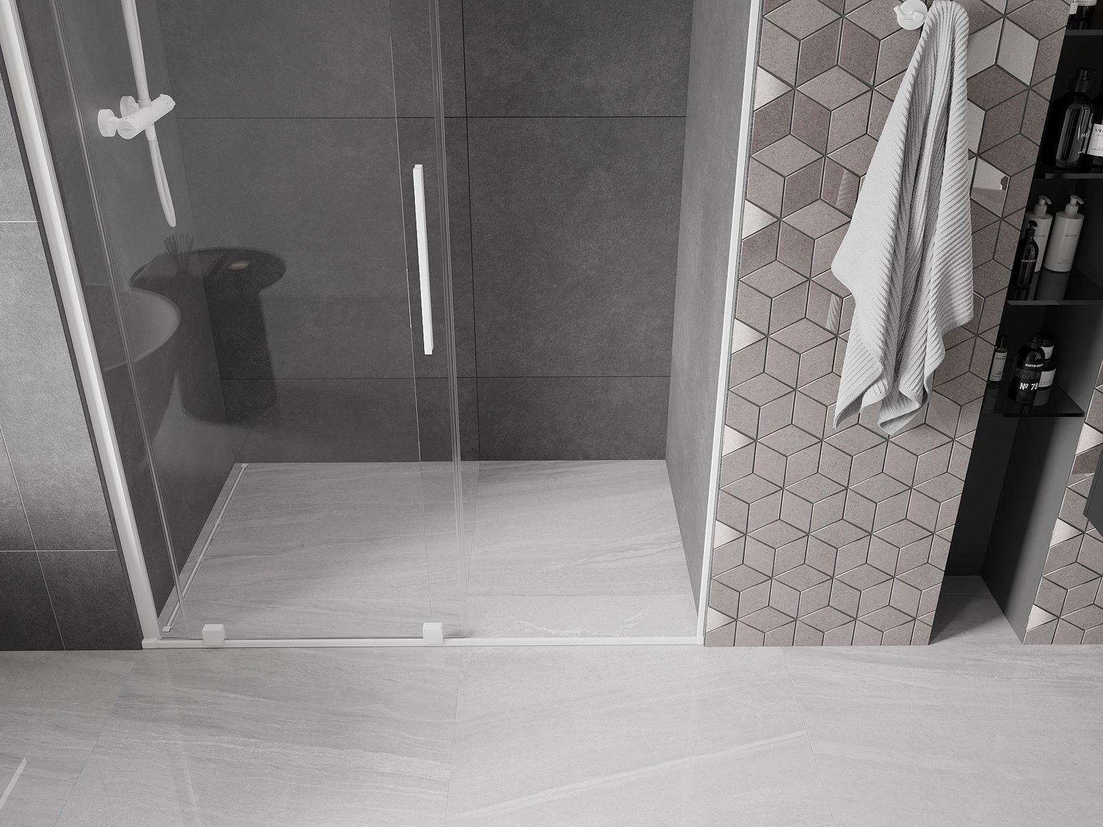 Poręczny i wygodny uchwyt został wykonany ze stali nierdzewnej. Modny kształt w połączeniu z wykończeniem dopasowanym do koloru profili nadaje całości nowoczesnego i stylowego wyglądu, podkreślając estetykę każdej łazienki.