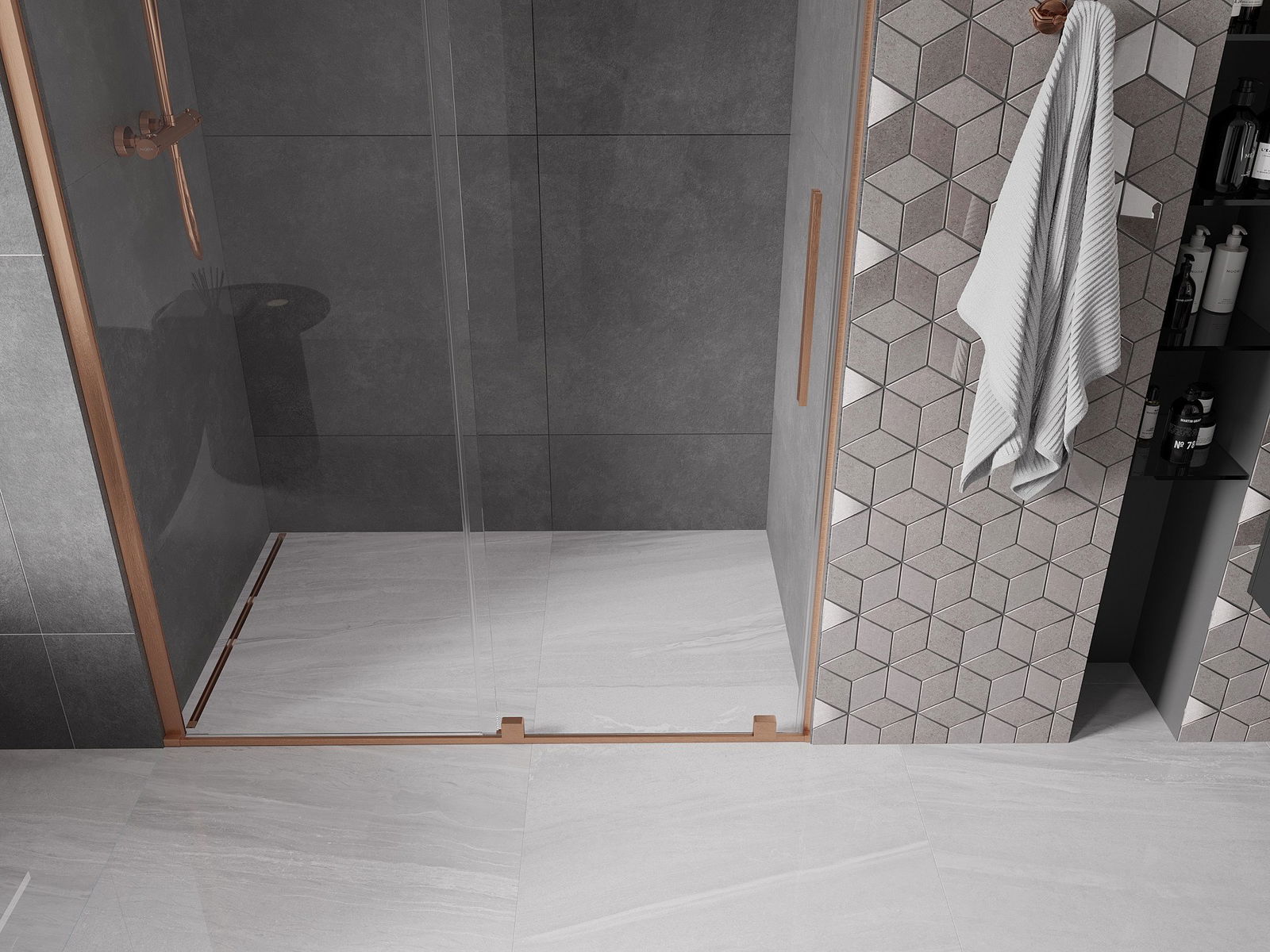 Mexen Velar drzwi prysznicowe rozsuwane 130 cm, transparent, miedź szczotkowana - 871-130-000-01-65