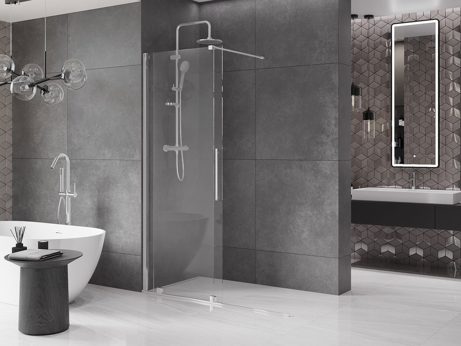 Ścianka prysznicowa walk-in to idealne rozwiązanie dla osób niepełnosprawnych. Kabina otwarta zapewnia łatwy dostęp, eliminując potrzebę pokonywania progów i drzwi. Korzystanie z prysznica jest komfortowe i przyjazne dla każdego.