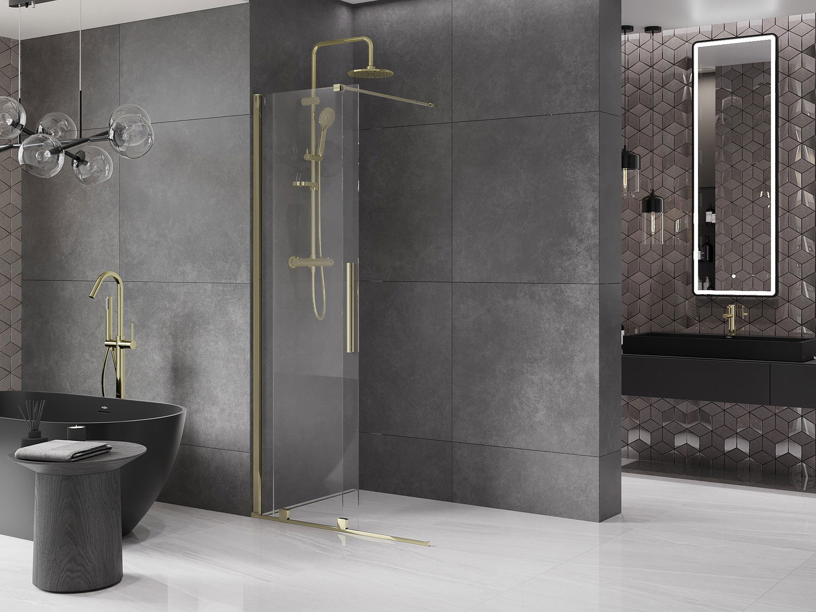 Mexen Velar ścianka prysznicowa rozsuwana Walk-in 80 x 200 cm, transparent 8 mm, złota - 871-080-000-03-50