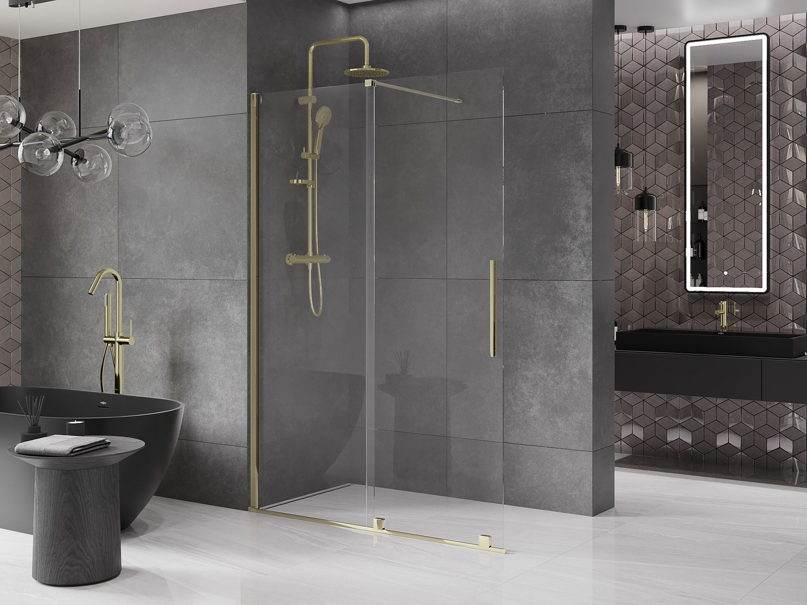 Mexen Velar ścianka prysznicowa rozsuwana Walk-in 160 x 200 cm, transparent 8 mm, złota - 871-160-000-03-50