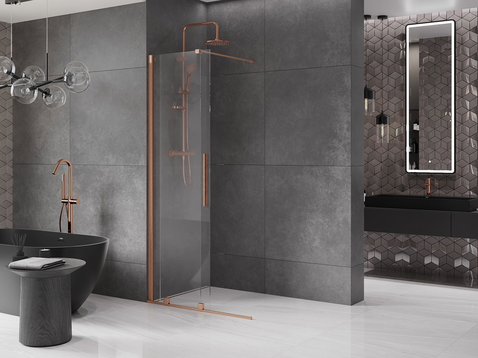 Mexen Velar ścianka prysznicowa rozsuwana Walk-in 80 x 200 cm, transparent 8 mm, miedź szczotkowana - 871-080-000-03-65