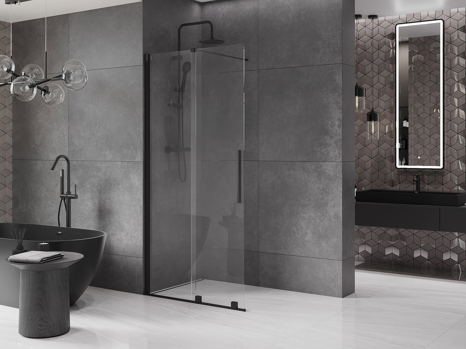 Mexen Velar ścianka prysznicowa rozsuwana Walk-in 75 x 200 cm, transparent 8 mm, czarna - 871-075-000-03-70
