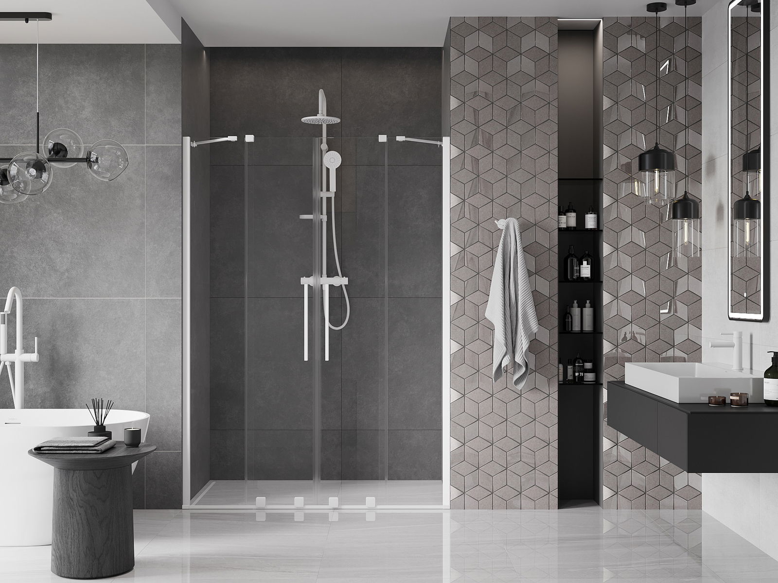 Dzięki zastosowaniu uniwersalnego systemu mocowania, drzwi prysznicowe mogą zostać zamontowane z prawej lub z lewej strony, zależnie od potrzeb. Dzięki temu możesz z łatwością zaprojektować prysznic dopasowany do przestrzeni łazienki.
