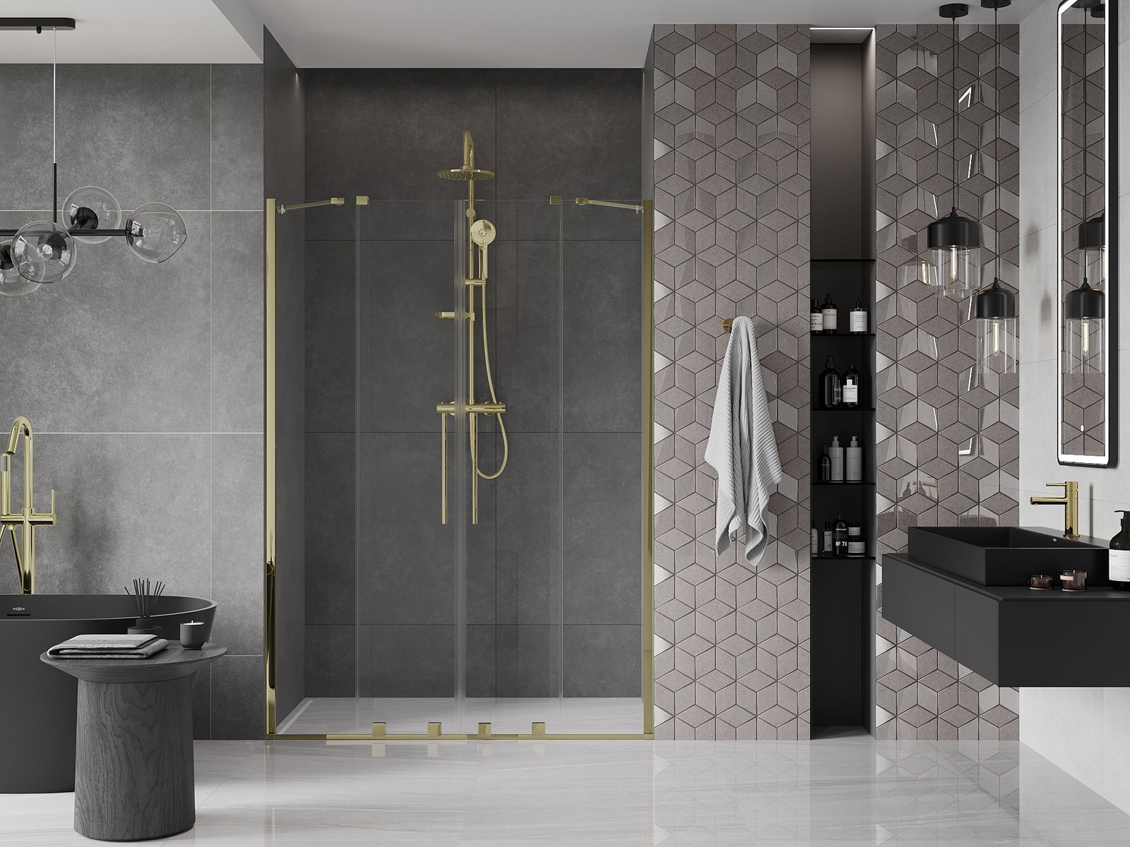 Mexen Velar Duo drzwi prysznicowe rozsuwane 150 cm, transparent, złote - 871-150-000-02-50