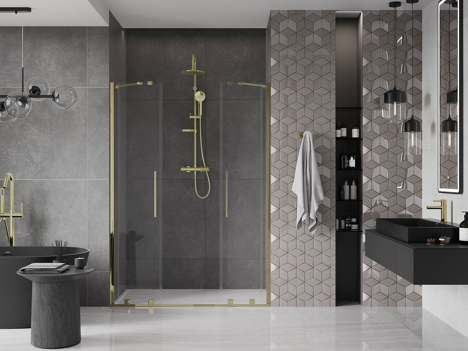 Mexen Velar Duo drzwi prysznicowe rozsuwane 160 cm, transparent, złote - 871-160-000-02-50