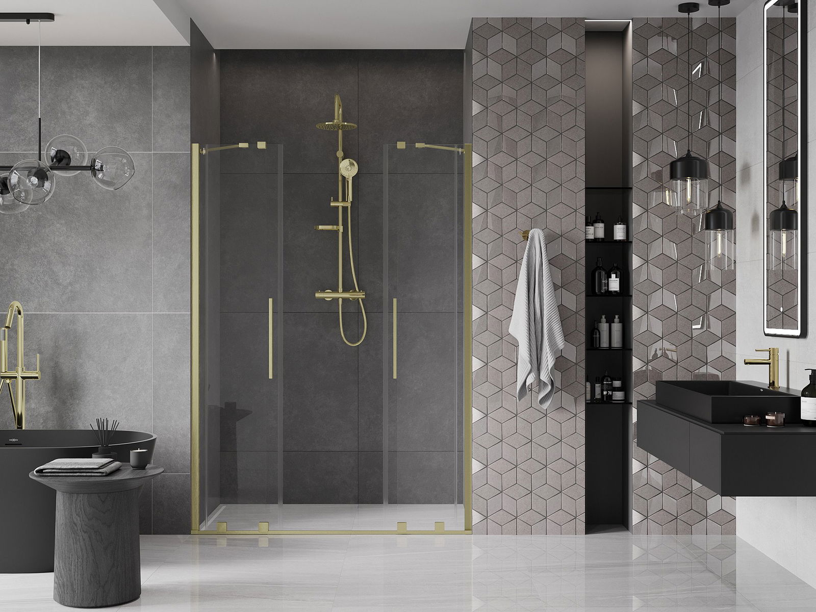 Mexen Velar Duo drzwi prysznicowe rozsuwane 150 cm, transparent, złote szczotkowane - 871-150-000-02-55